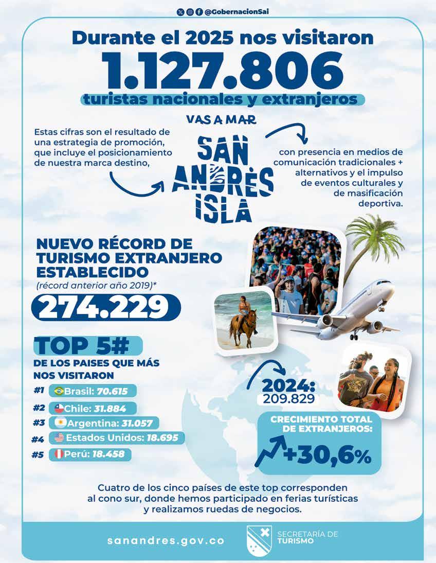 Providencia y Santa Catalina registraron un notable aumento en la afluencia de visitantes al cierre de 2025, resultado del trabajo constante de reactivación y posicionamiento adelantado por la Secretaría de Turismo del municipio, sumado al cuidado permanente de sus atractivos naturales y culturales, factores que impulsaron este crecimiento turístico.