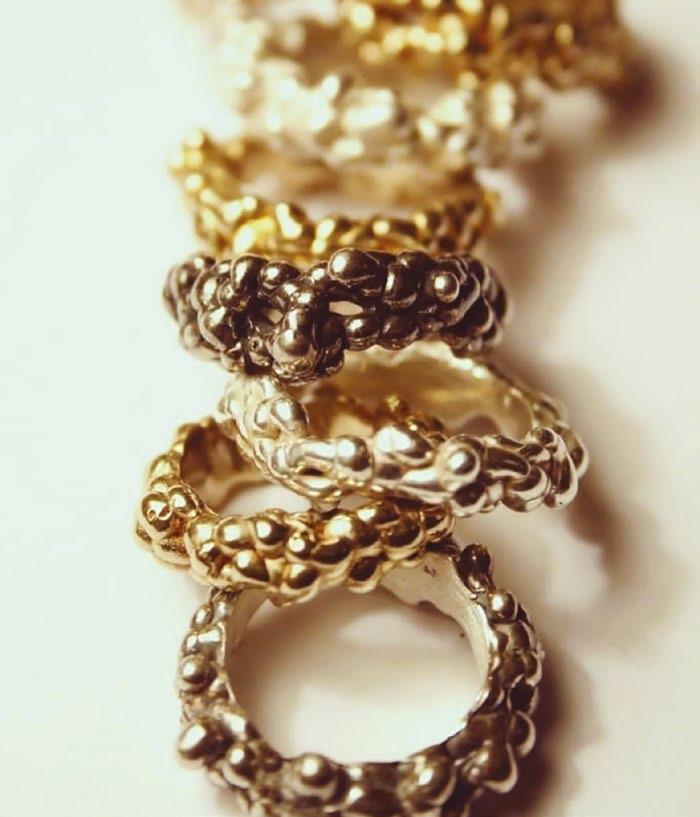 Finding beauty in the lost and found, bespoke jewellery maker Serra Malta has always been intrigued by an object’s history and the mark the user leaves behind. Inspired by anything natural or manmade, Serra’s creations begin by being washed up on a beach or found on a woodland walk. She is particularly fascinated by attitudes to consumables in our throwaway world and challenges the meaning of usefulness. Using lost wax casting, the objects are carved, filed and shaped before taking the form of metal. The jewellery, that was once a discarded object, becomes something to treasure. Bottle- tops or fragments of a shell form some of her exquisite work.