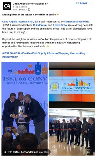 Iaddress you only a month or so after what was a momentous ISSA 66 Convention in Seville when the world of quality ship supply rubbed very proud shoulders with buyers and sub suppliers alike to produce one of the best ISSA Conventions in decades.