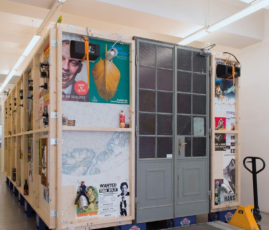 Above the entrance and on the outer walls, Schabus presents a special collection of objects that he has been acquiring for more than fifteen years. These include toy figures and music records, and are all somehow called Hans.