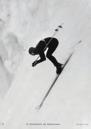 ( above ) Klaus Obermeyer celebrating the wonder and magic of snow. He says he’s continually amazed that one of the planet’s greatest resources, water, freezes and becomes snow, something we can all enjoy sliding around on. ( left ) One of Obermeyer’s favorite pastimes, cruising fast. “To escape the pull of gravity is like leaving the earth without having to be an astronaut.” Obermeyer running a downhill in G ermany, 1942.