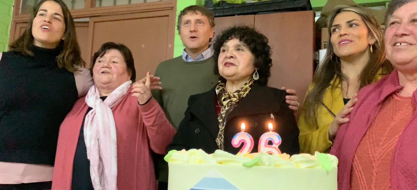 de la organización, Raquel Donoso, antes de apagar las respectivas velas del pastel.