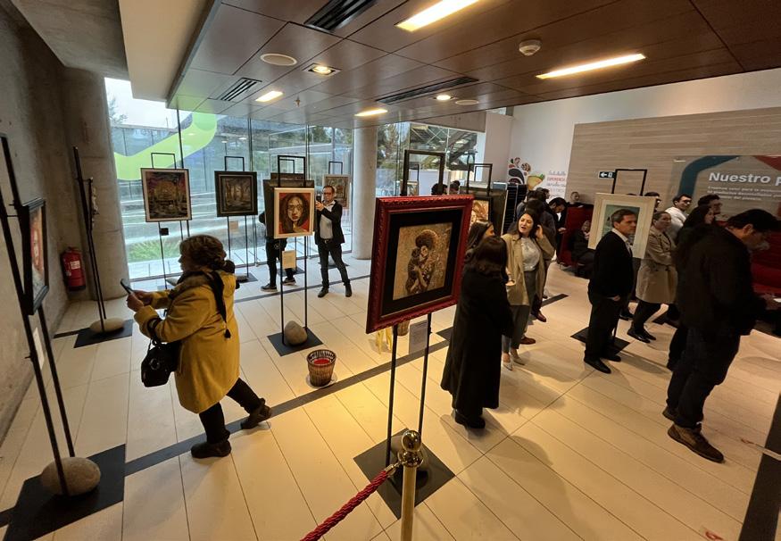 narrativa personal se incrustan en el alma, cual puntada de hebra. “Estoy súper contenta porque es primera vez que expongo en San Bernardo mi obra personal, porque la mayor cantidad de años los he pasado enseñando esta técnica. Y que la empresa me invitara a ser parte de esta iniciativa me llena de orgullo, porque hemos sido capaces, y acá incluyo a las mujeres que son parte de taller de crewel en la Casa de la Cultura de San Bernardo, con quienes hemos desarrollado 100 obras con los edificios emblemáticos de la comuna”, dijo Valenzuela “Tener todas mis obras acá juntas me emociona, por lo que felicito a la empresa por tener esta iniciativa, la que hay que replicar. Hoy acercamos el arte a las personas y ese es un gran motor para decirle a las comunidades que el arte es de todos”, agregó.
