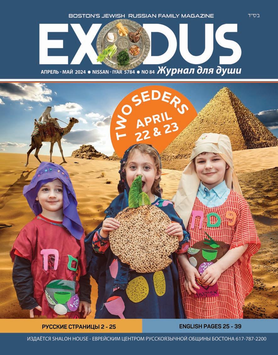 Exodus Magazine Boston Edition is published monthly by the GREATER BOSTON JEWISH RUSSIAN CENTER Февраль-Март 2024 Issue 86 Registration Number 770 Circulation 4,000 Подписка: $ 18 Printed in USA Мнения, высказываемые авторами публикуемых материалов, не обязательно совпадают с мнением редакции. Реклама и объявления в следующий выпуск принимаются до 13 числа текущего месяца. 3 ЭКСОДУС | АПРЕЛЬ - МАЙ 2024