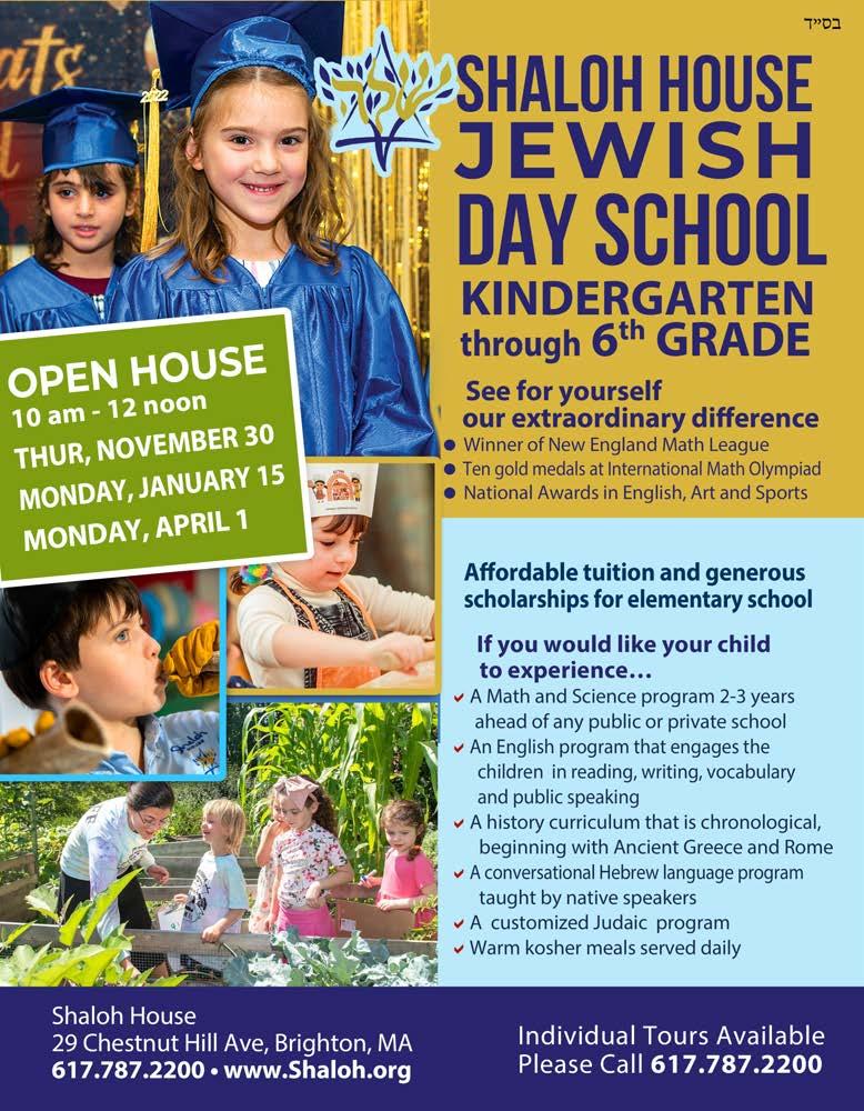 SCHOOL OHOLEI TORAH 29 Chestnut HillAvenue Brighton, MA 02135 NON-PROFITORG U.S. POSTAGE PERMIT #770 BOSTON, MA PAID