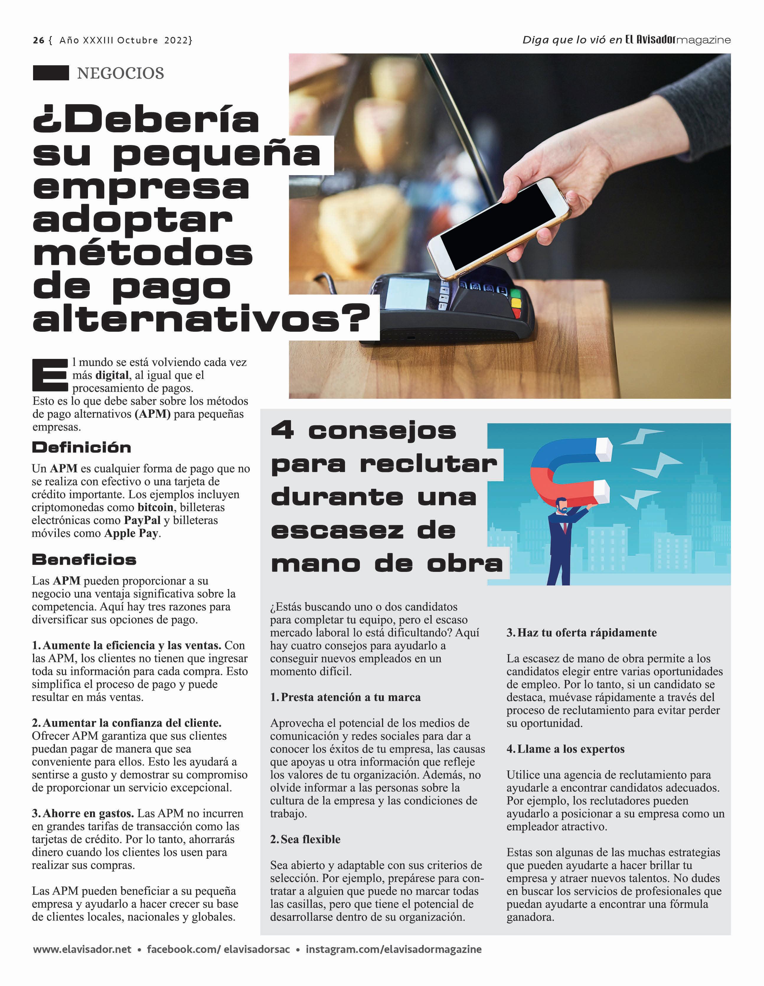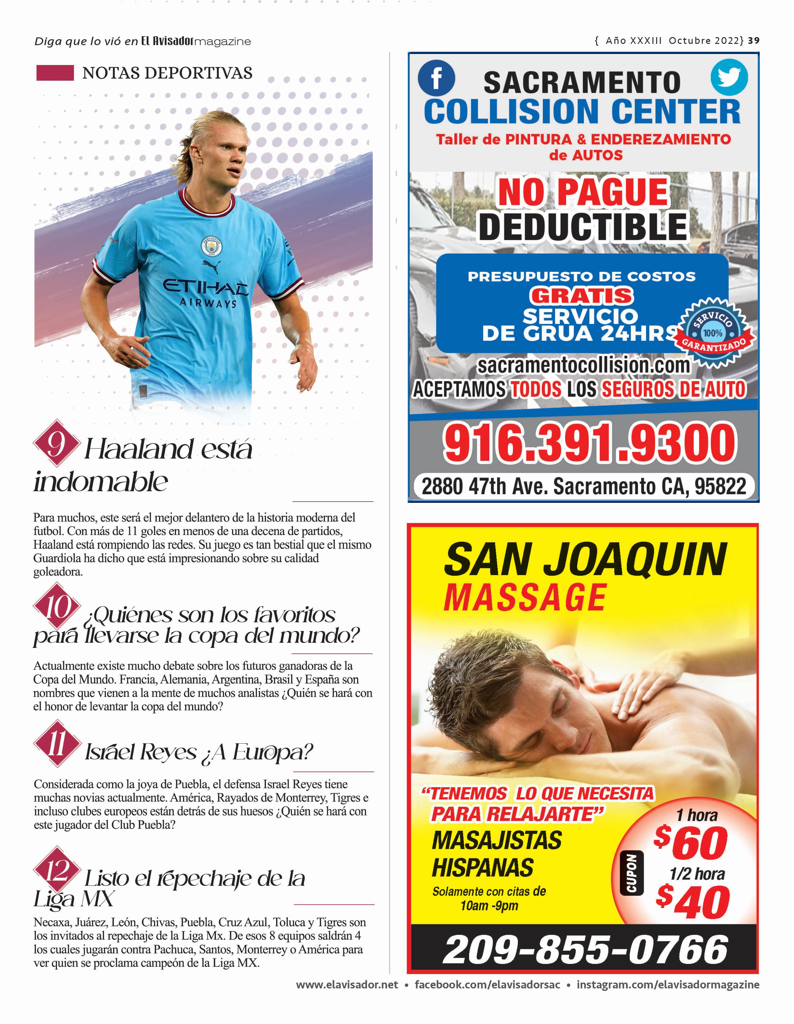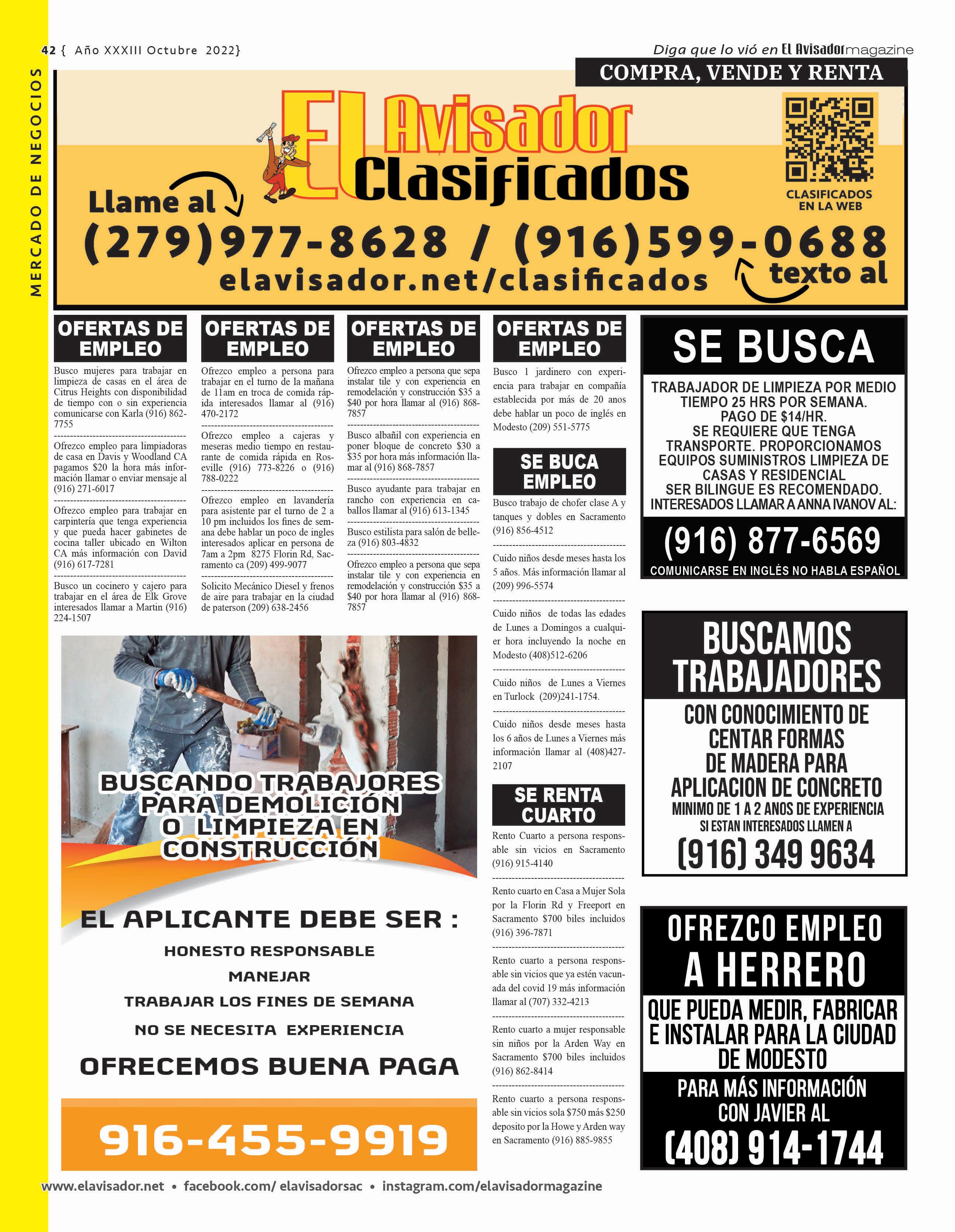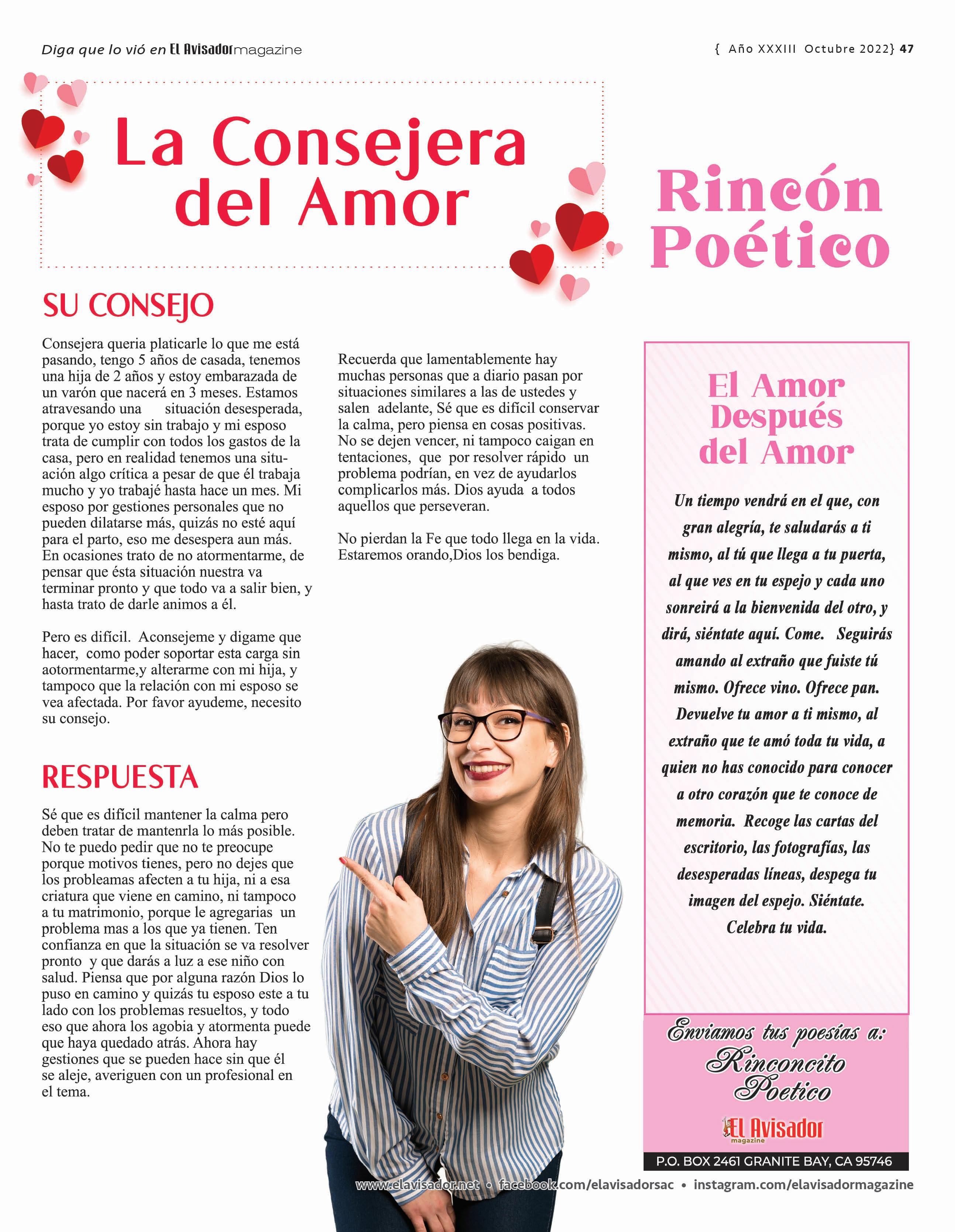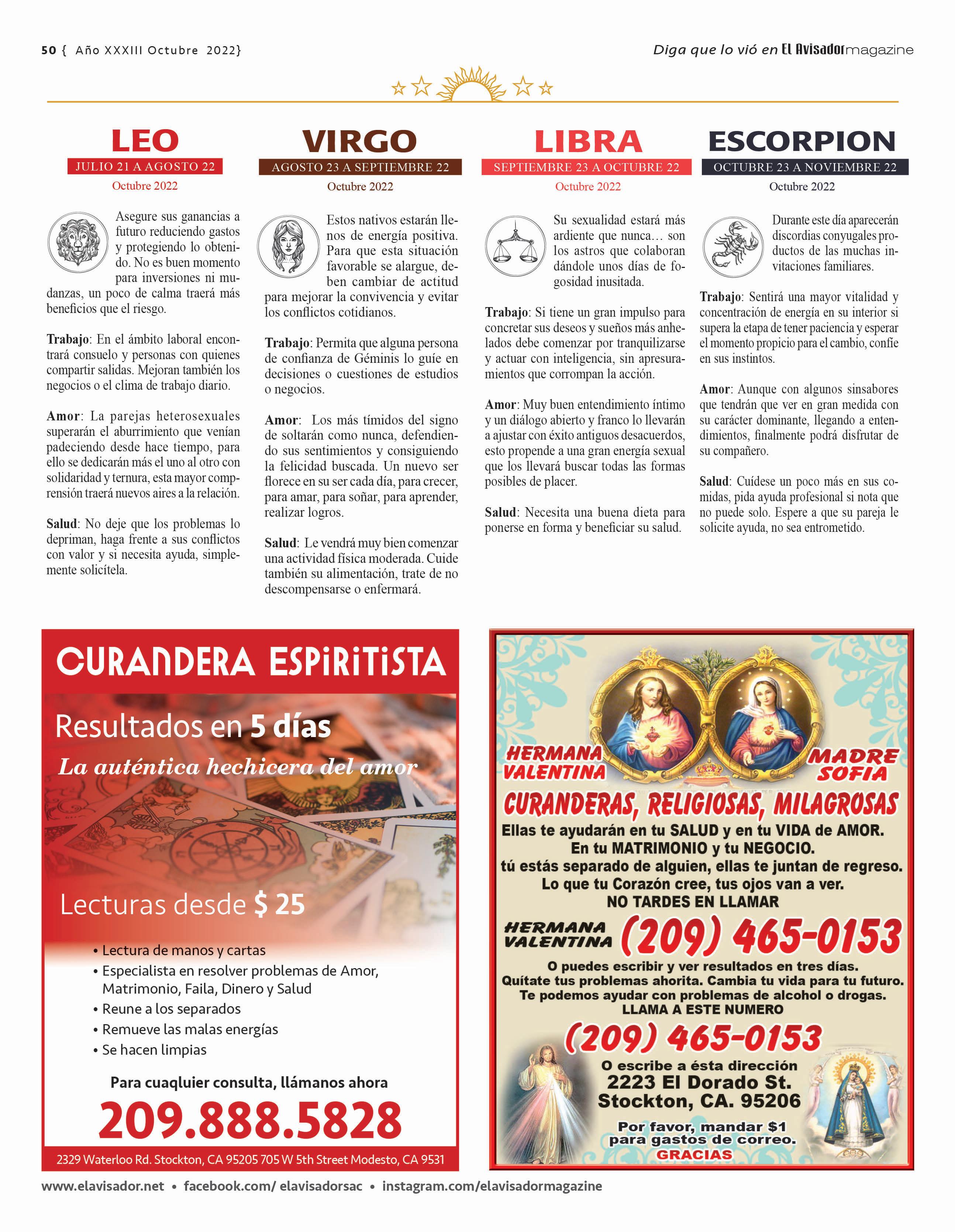 El Avisador Magazine. ¡Edición octubre 2022! - Todos lo que debes saber sobre el examen de ciudadanía - No puedes perderte lo último de la Farándula - Y este mes tenemos a la hermosísima Rachel VallonCeremonia del grito de independencia - 5 mitos sobre el cáncer de mama - Lo que necesitas saber sobre las mamografías - Día de lmuertos, una tradiciín que nunca muere - Nuestro voto importa, latinos registrados para votar - La semana de la cinta roja - Y encuentra los mejores Clasificados de todo el mercado ¡Somos el avisador magazine, siempre con lo mejor! Estamos en más de 5,000 puntos de distribución en el norte de California. www.elavisador.net