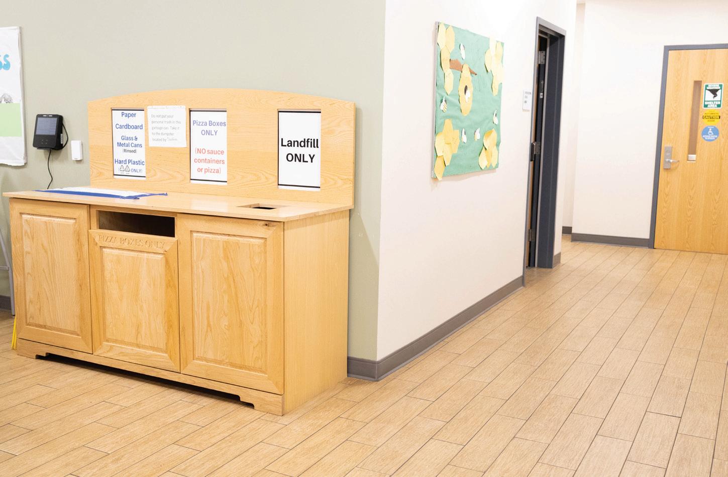 bottom: A main Berea College principle of Berea College is teaching sustainable living through example, so simple reminder signage is seen throughout the halls.