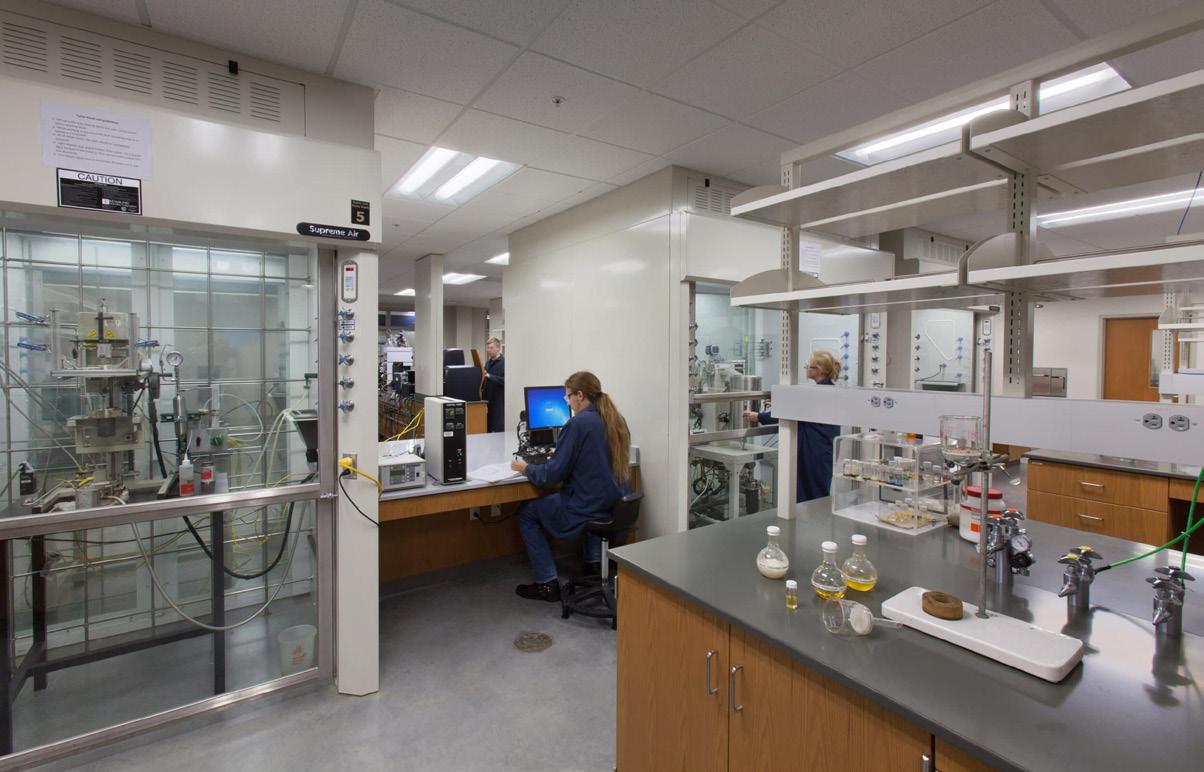 The research space incorporates labs and testing areas for prototyping, characterization, evaluation and lifecycle testing of new photovoltaic and solar materials. The core of the first floor houses analytical instrumentation for bioenergy and biofuels.