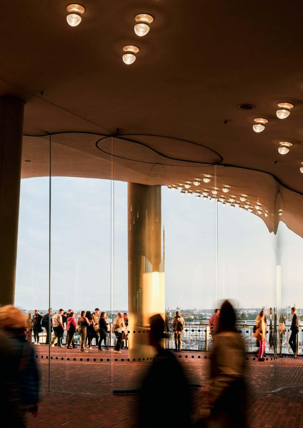Wer die Architektur der Elbphilharmonie auch unabhängig vom Konzert erkunden möchte, findet alle Informationen zur öffentlichen Aussichtsplattform »Plaza« und zu den Elbphilharmonie Hausführungen unter www.elbphilharmonie.de/besuch oder ab Seite 140