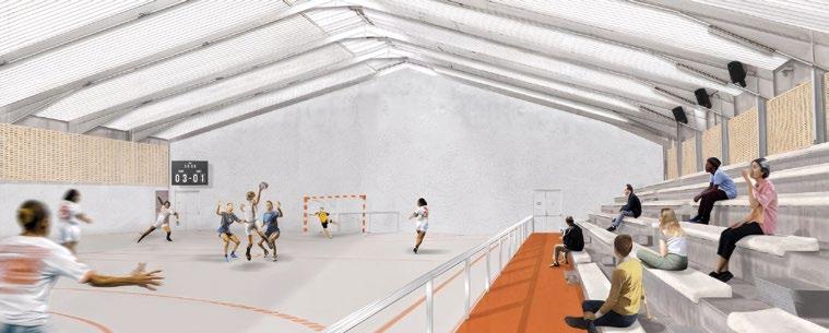 canviarà el paviment de la pista, es millorarà l’acústica interior i s’afegirà un volum annex amb espais funcionals com nova zona de magatzem, sala tècnica i altres instal·lacions auxiliars.