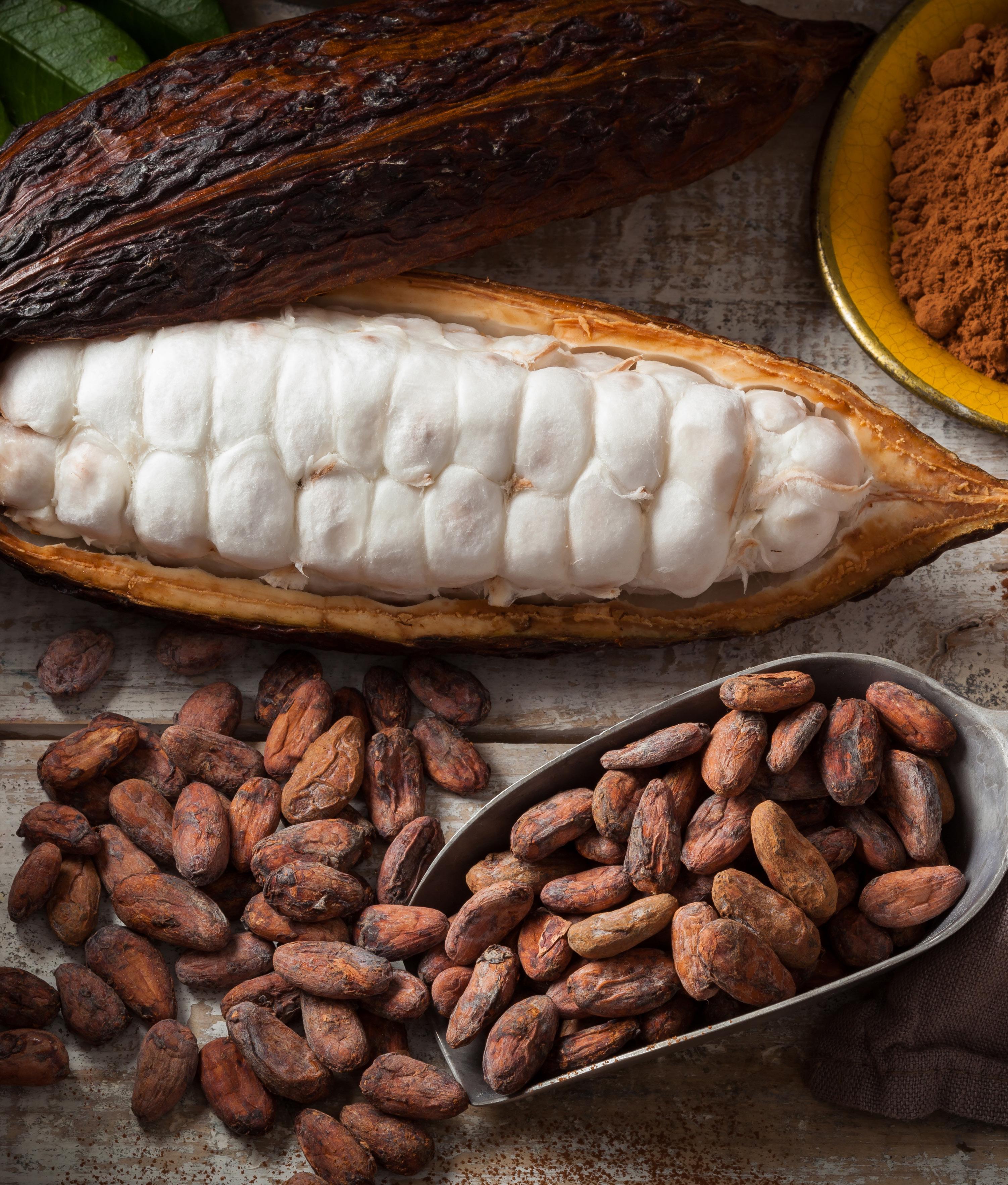Cuando la mazorca de cacao es cosechada se desechan las que pudieran estar enfermas o en mal estado, con las demás se procede al quebrado, y los granos de cacao son extraídos.