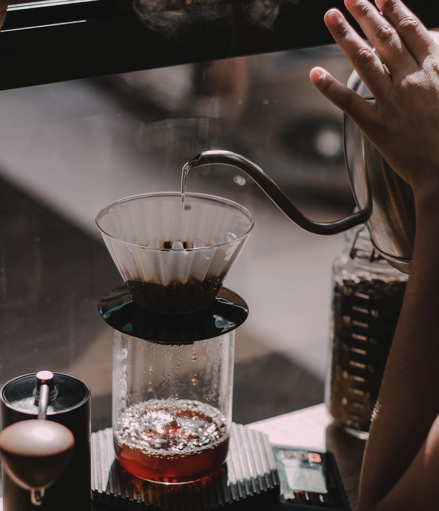 Pero eso no es impedimento para que desarrollen e inno ven con opciones atractivas para los amantes del café. Del ser vicio que brindan, destacan por preparar los métodos directa mente en la mesa de los clientes y constantemente renuevan los orígenes de sus lotes, aunque la “joya de la corona” es el geisha proveniente de la finca Garabandal de Coatepec, Vera cruz, del productor Mario Fernández Sánchez (QEPD).