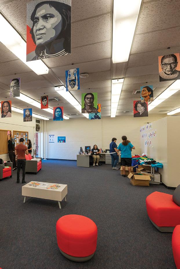 A Social Justice Center opened on campus this fall, an inclusive space initiated by student leaders who envisioned a welcoming space to unite all equity-minded students, programs, and clubs. Committed to social justice through education and collaboration, the center recognizes, celebrates, and supports students who have been historically underrepresented and underserved, including but not limited to students who identify as Black, Indigenous, people of color, LGBTQIA+, disabled, undocumented, first generation, low income, system impacted, and many more. Students can find more information about campus and community resources, interact with social justice advocates, and attend educational events, such as film screenings, dialogues, and performances at the Social Justice Center.