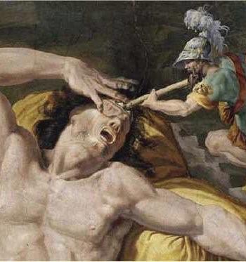 Al día siguiente, el cíclope volvió a coger a dos marineros por las piernas, los estrelló contra las paredes de la cueva y, desmembrándolos, se los fue comiendo trozo a trozo, mientras se chupaba los dedos.
