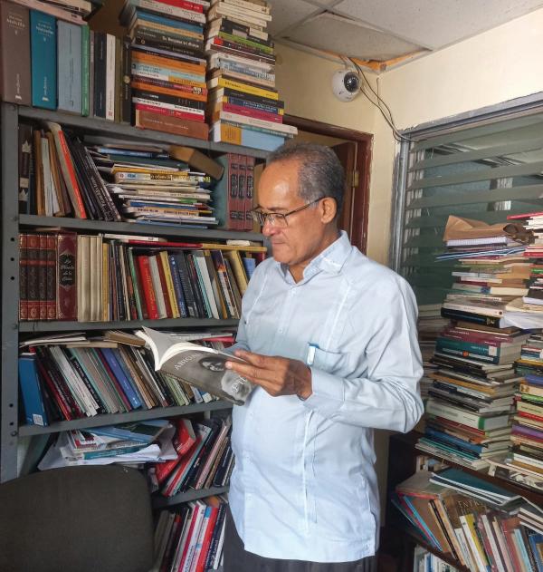 La vida cotidiana de Isael Pérez transcurre entre libros y proyectos de publicación.