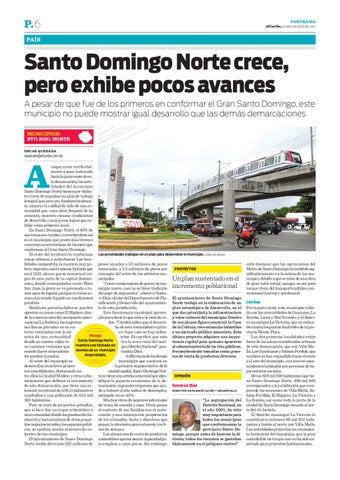 Santo Domingo Norte crece, pero exhibe pocos avances A pesar de que fue de los primeros en conformar el Gran Santo Domingo, este municipio no puede mostrar igual desarrollo que las demás demarcaciones MUNICIPIOS: STO. DGO. NORTE OSCAR QUEZADA oquezada@elcaribe.com.do