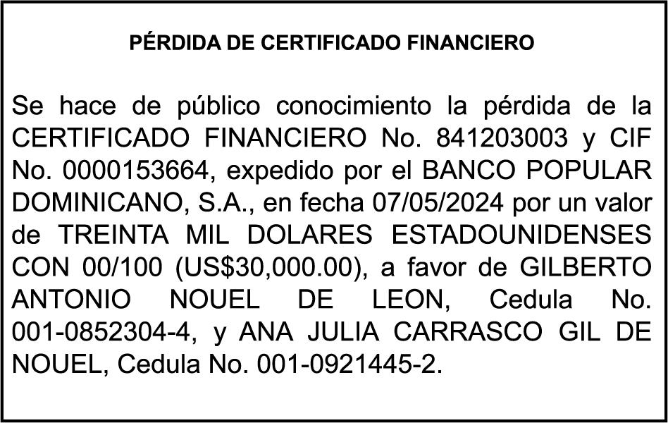 PERDIDA DE PLACA No. K2369891, Motocicleta BAJAJ, Modelo BOXER BM 150, Color NEGRO, Año 2023, Chasis MD2A21BX5PWC48571, a nombre de DOMINGO ALCANTARA SANTANA.