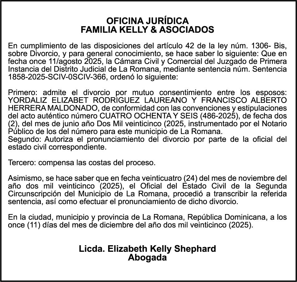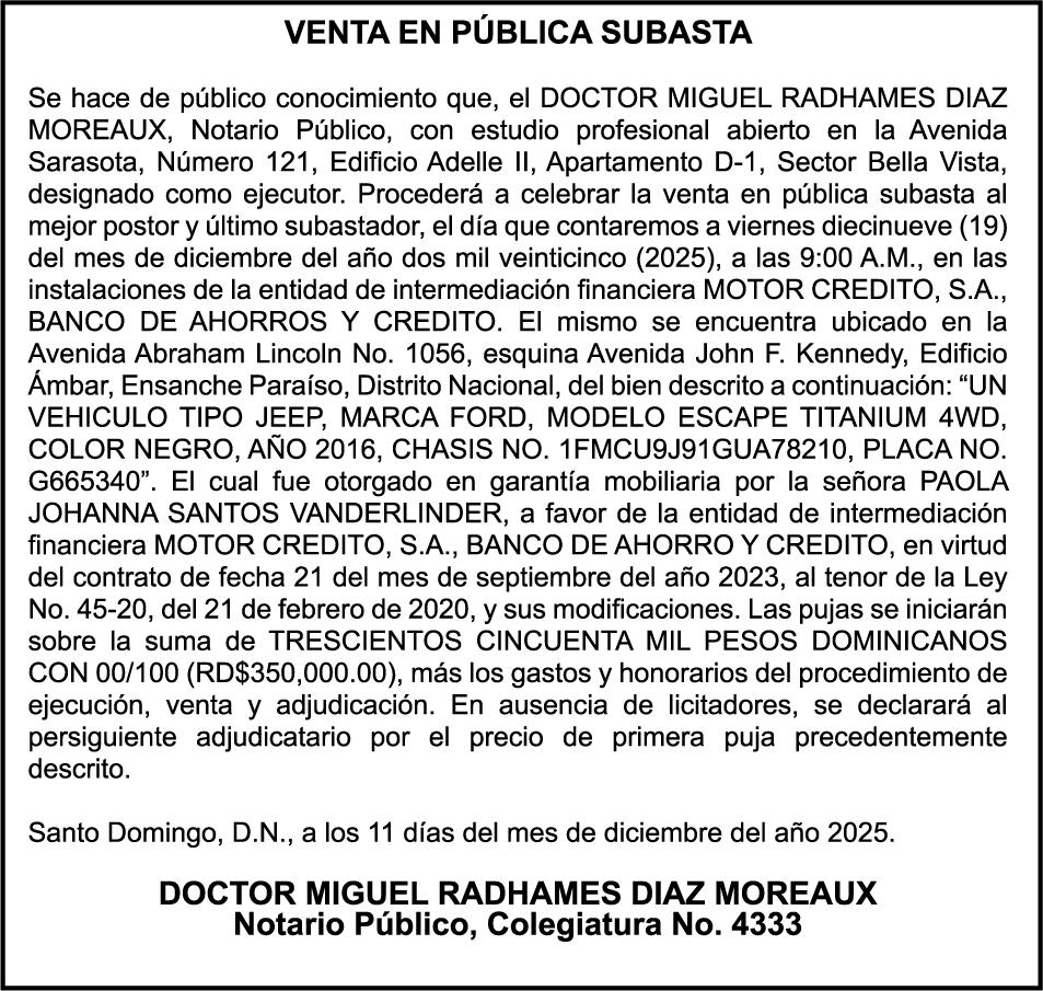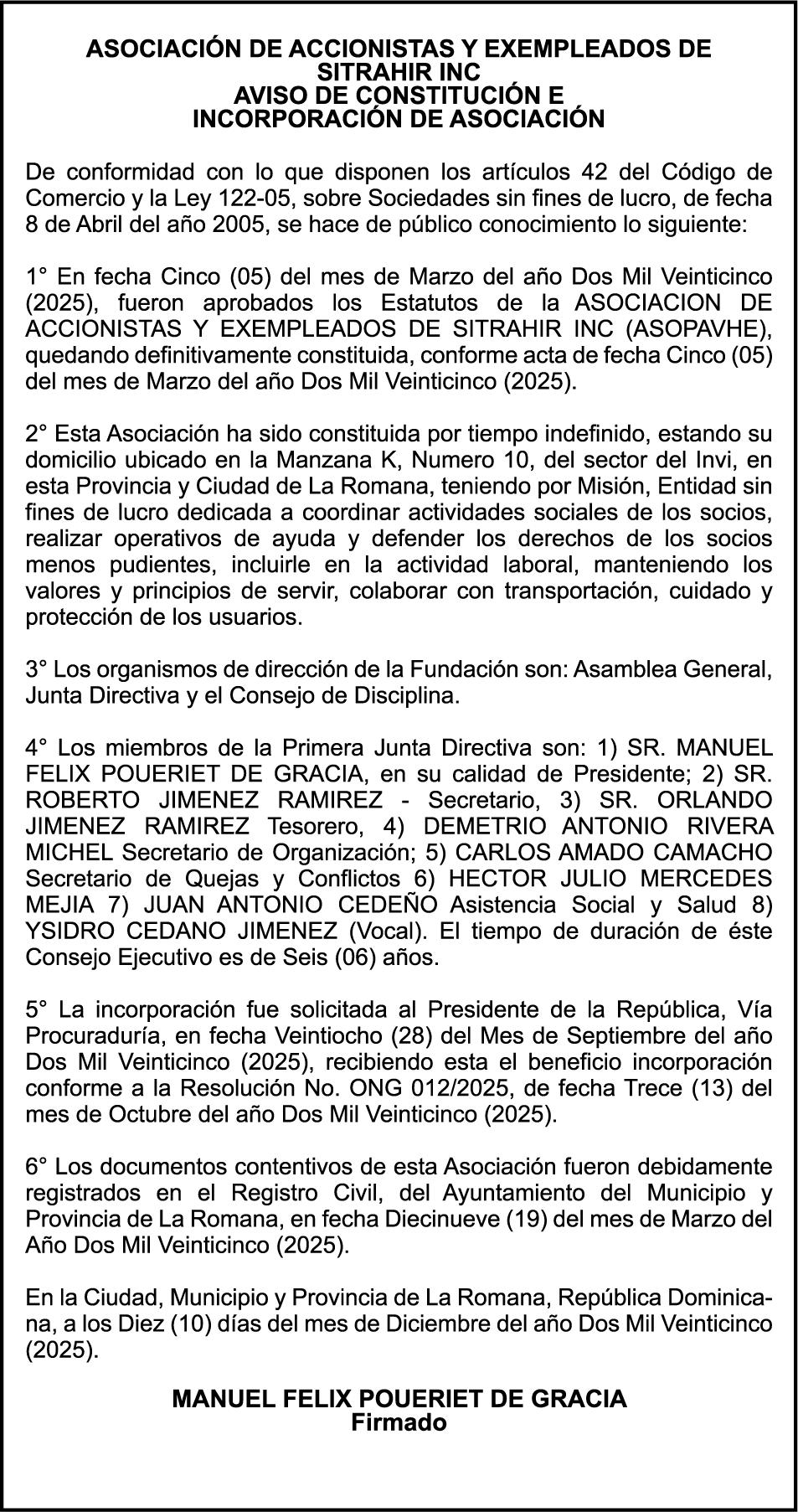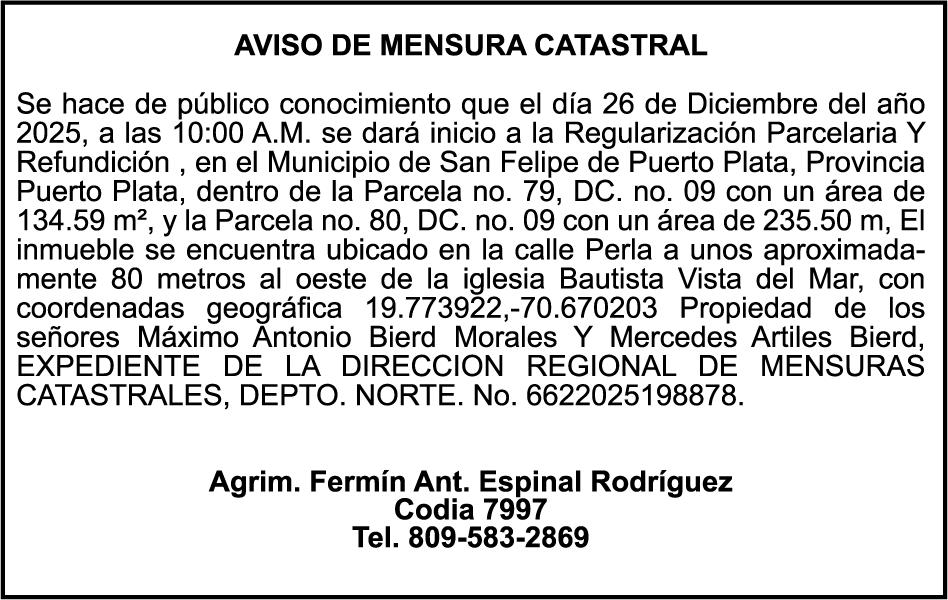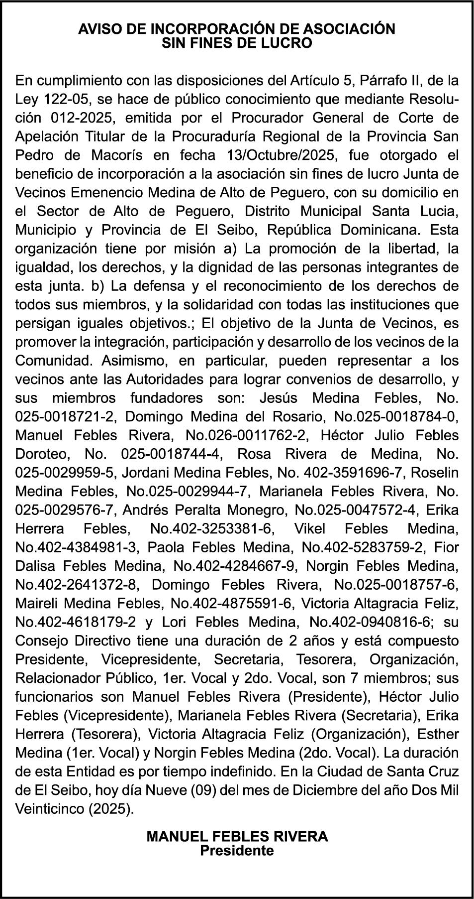 SE hace de público conocimiento la pérdida del Certificado Financiero número 842382210 emitido por Banco Popular Dominicano, S. A. Banco Múltiple, a nombre de ALIX JEAN, portador de la Cédula de Identidad y Electoral número 402-2481675-7, certificado número 842382210 expedido el 27 de junio de 2024 por el monto de (USD$6,193.33) más intereses generados a la fecha.