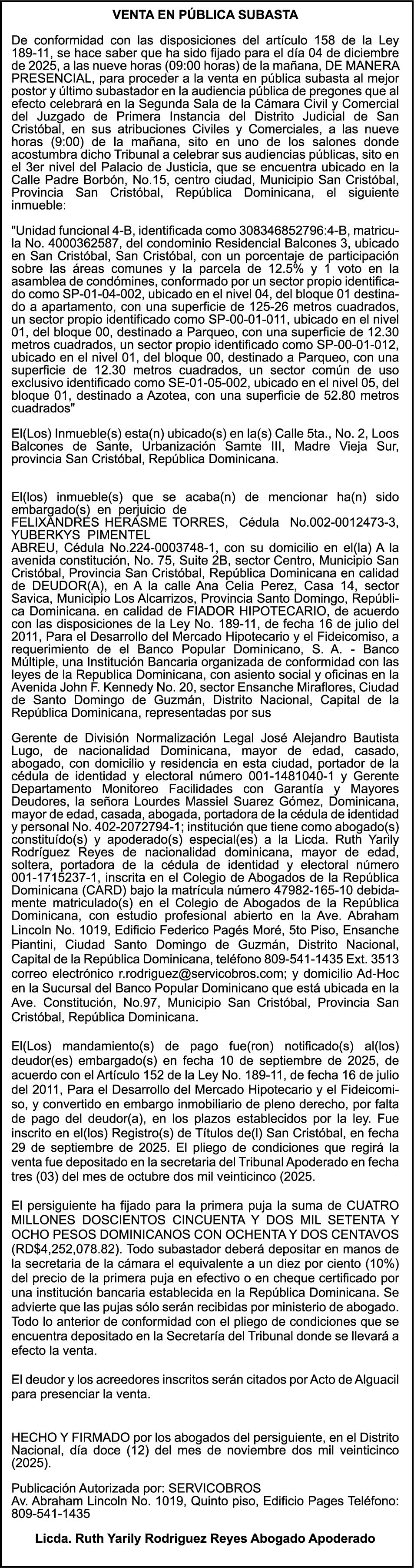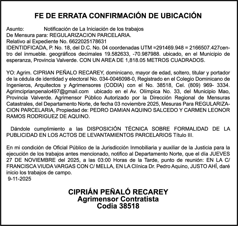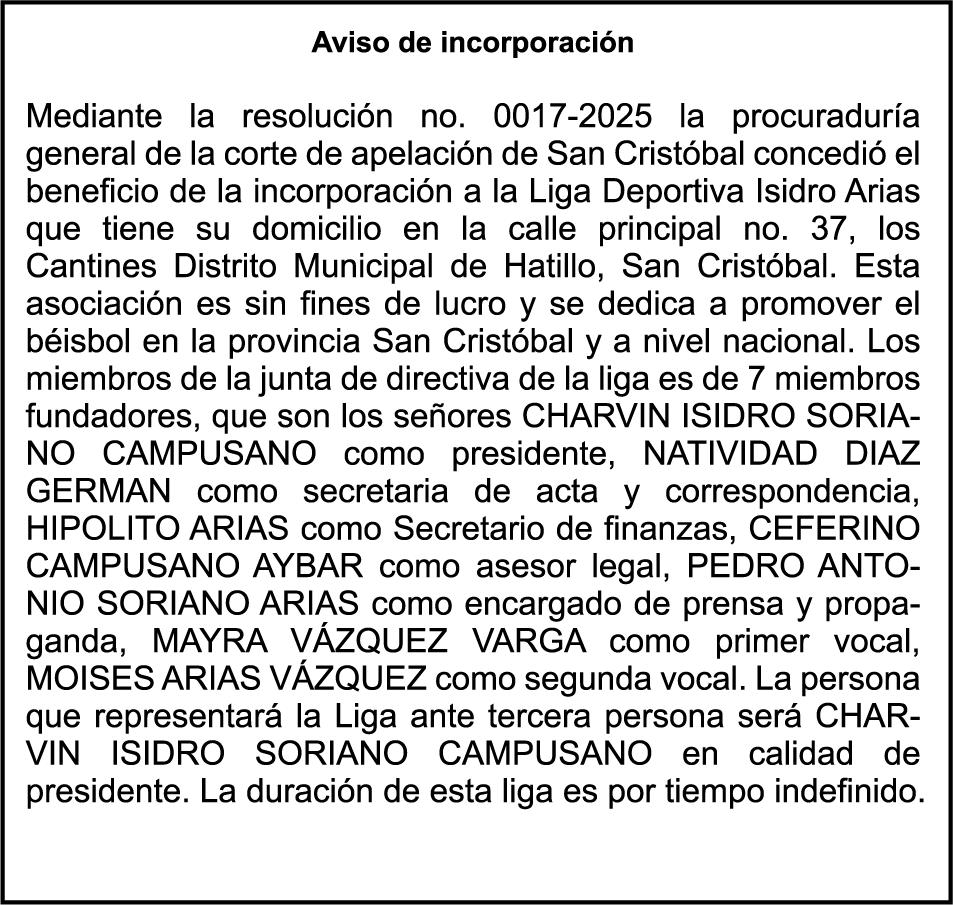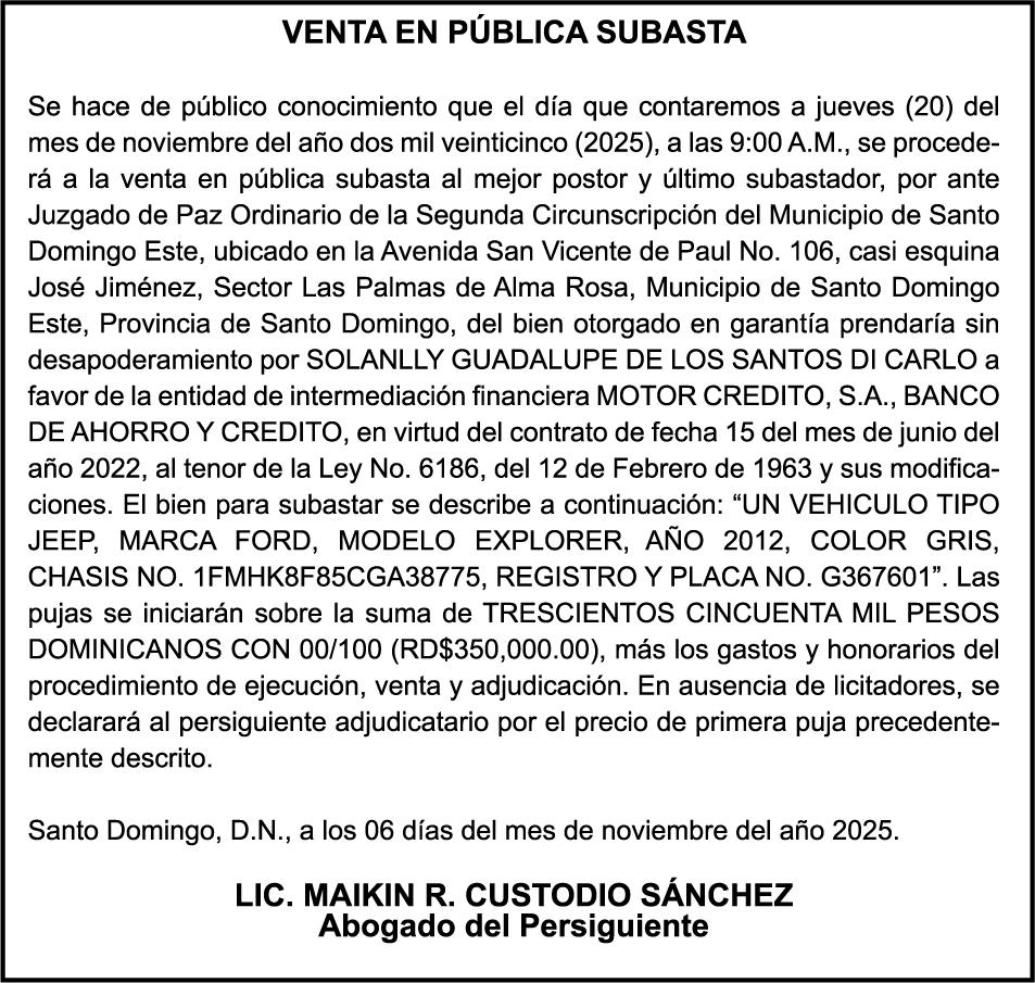 SE hace de público conocimiento la pérdida del Certificado Financiero número 846387660 emitido por Banco Popular Dominicano, S. A. Banco Múltiple, a nombre de ABRAHAM ISAAC GARRIDO CARCAMO, portador de la Cédula de Identidad y Electoral número 001-1801993-4, certificado número 846387660 expedido en fecha en fecha 8 de enero de 2025 por el monto de (USD$121,987.46) más intereses generados a la fecha.