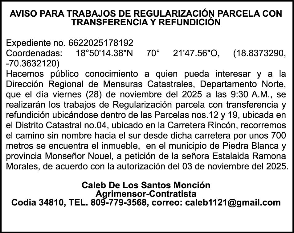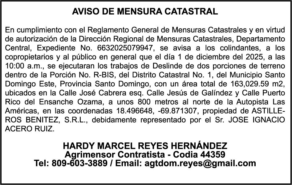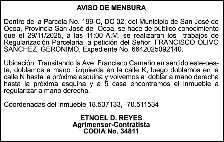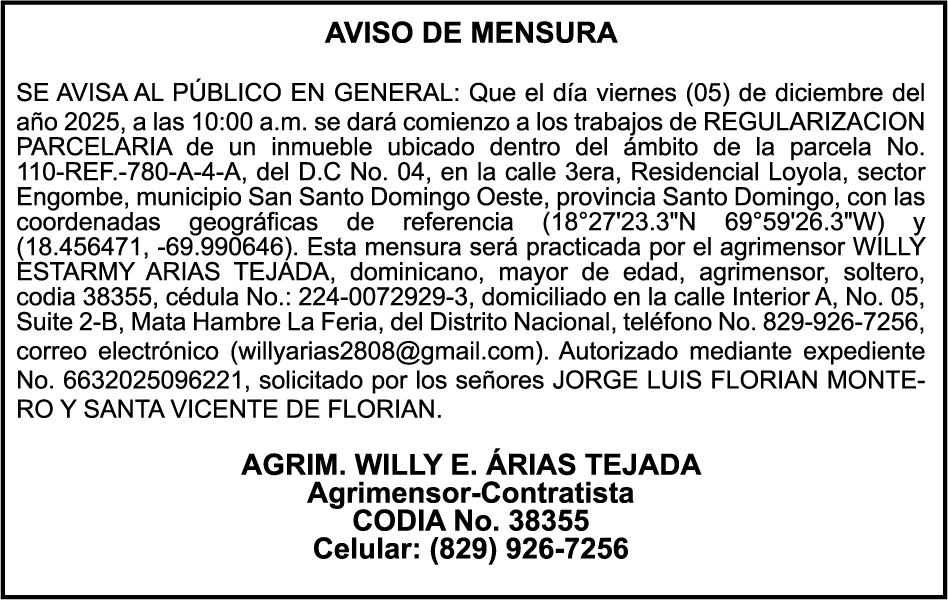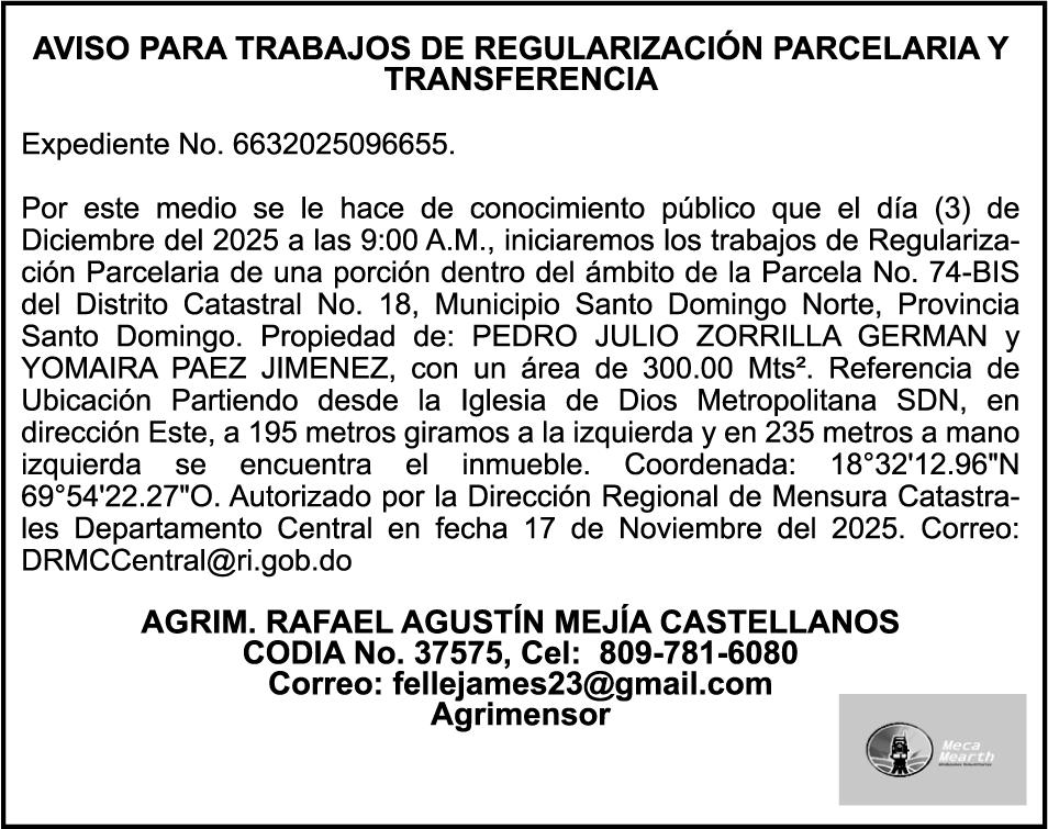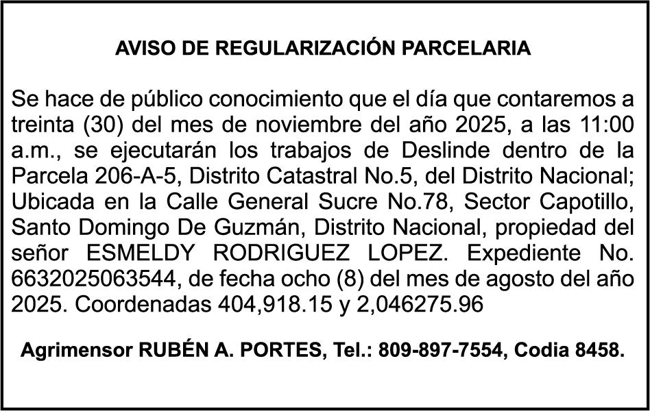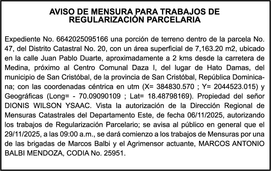 10:00 A.M. RP Industriales de la Harina/Inversión Molino. Distrito Industrial de Santo Domingo Oeste (Disdo), Calle Central, Hato Nuevo, Manoguayabo.