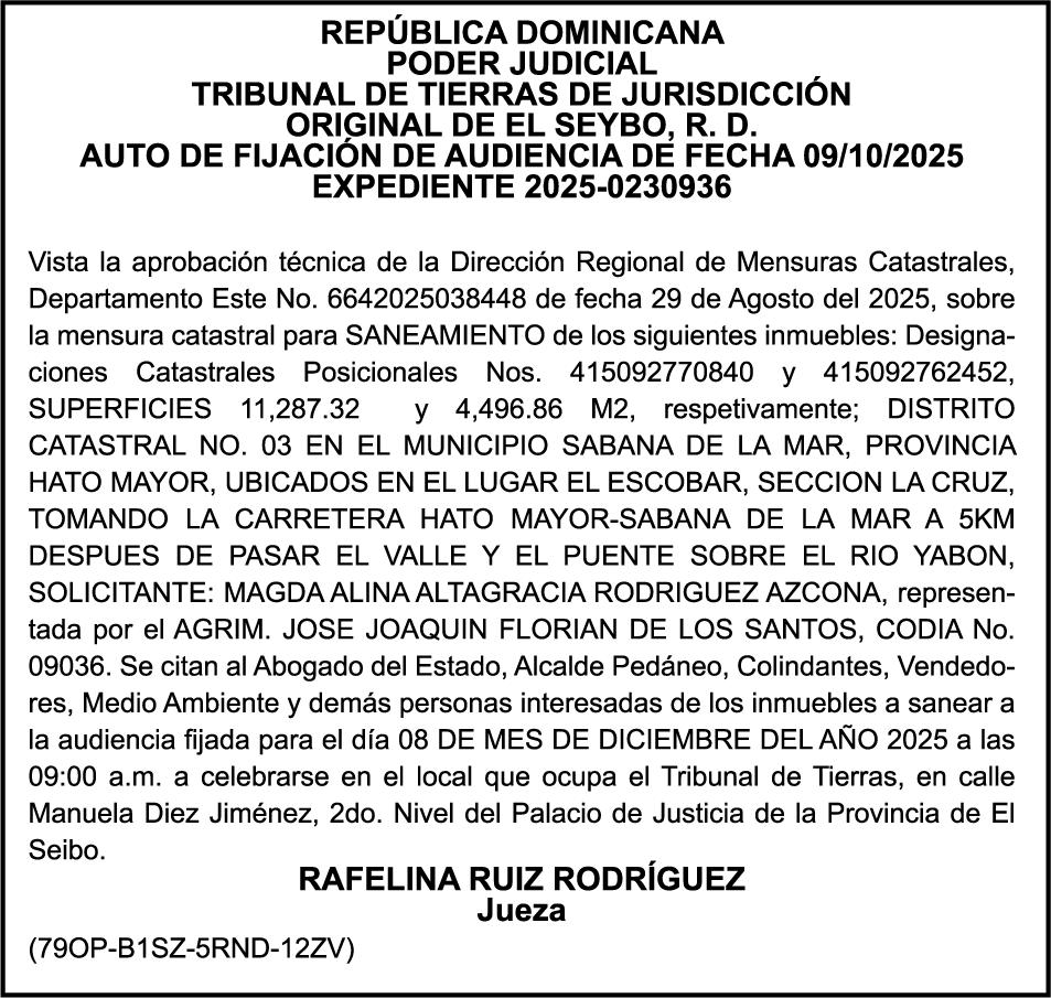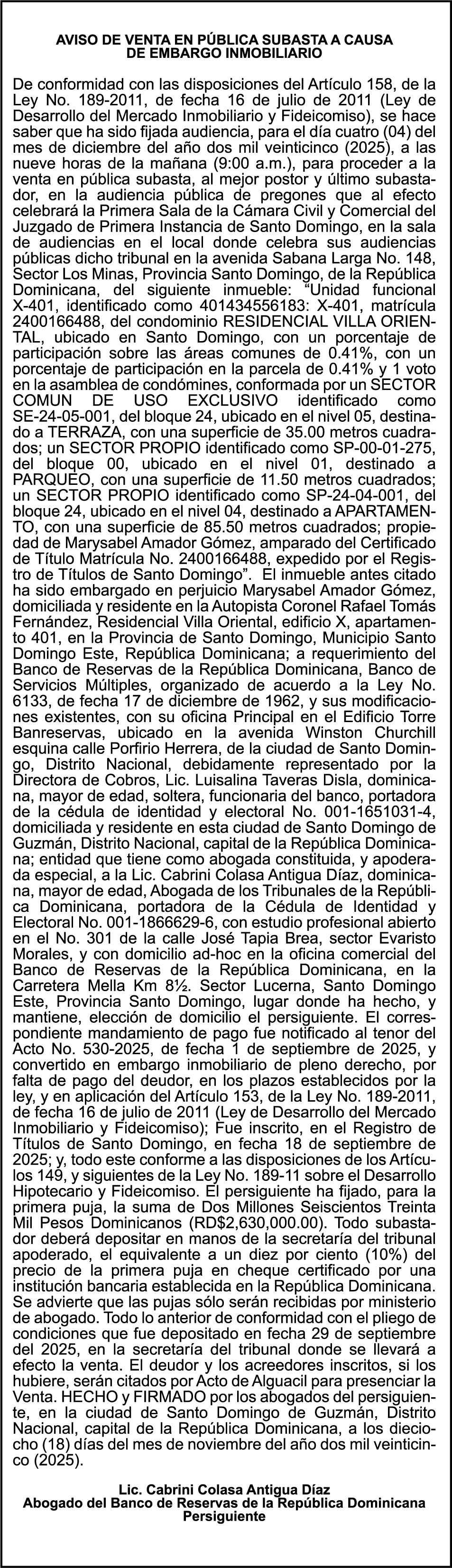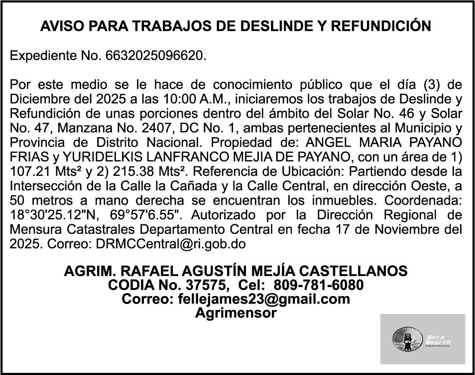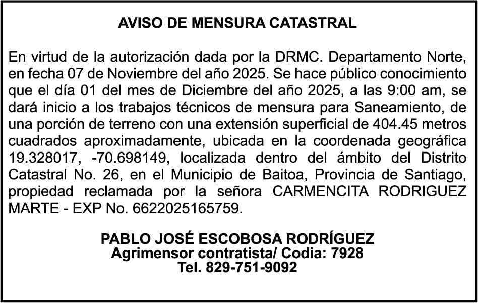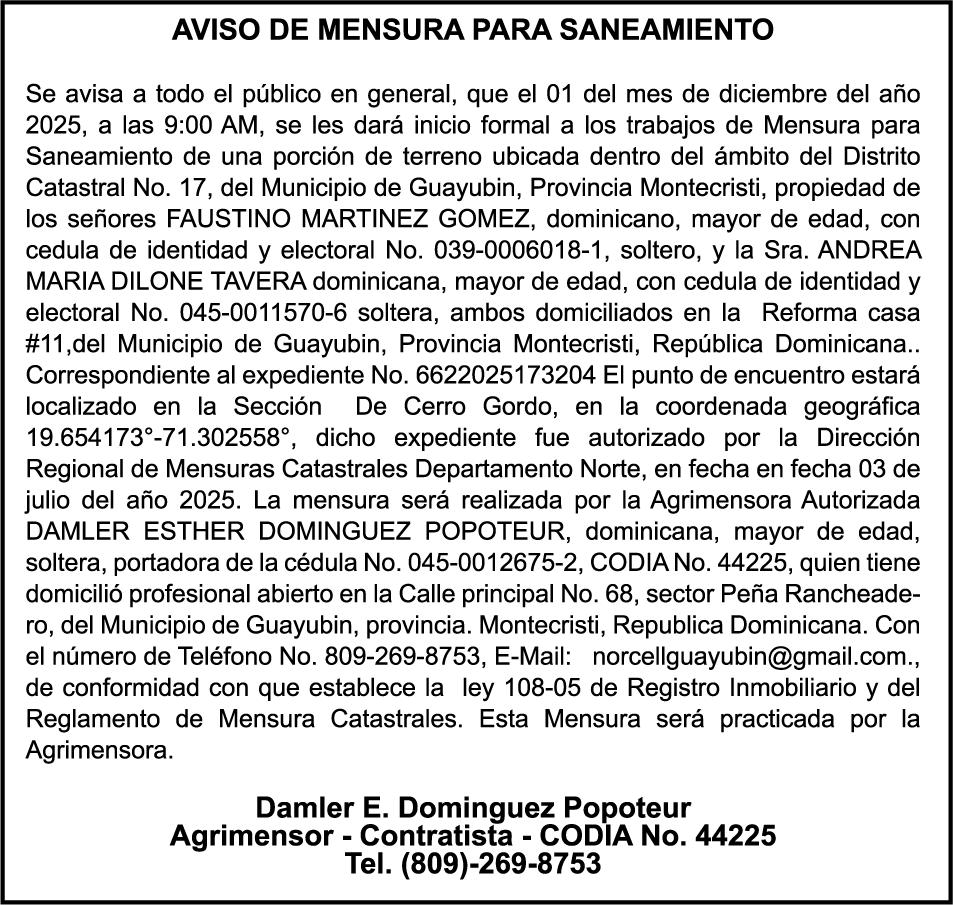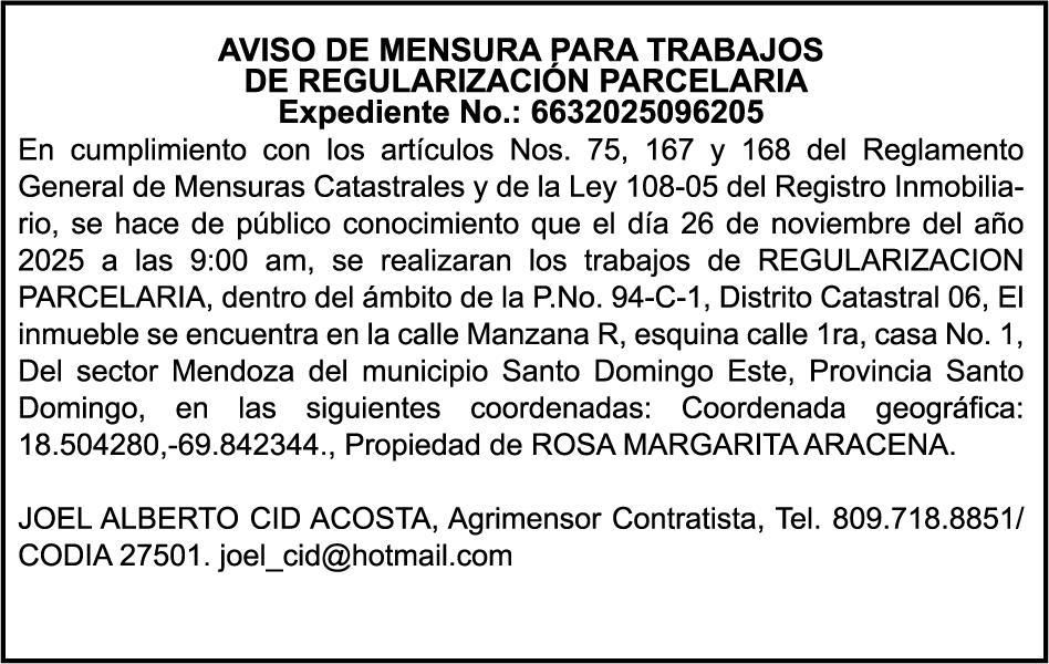 10:00 A.M. RP Industriales de la Harina/Inversión Molino. Distrito Industrial de Santo Domingo Oeste (Disdo), Calle Central, Hato Nuevo, Manoguayabo.