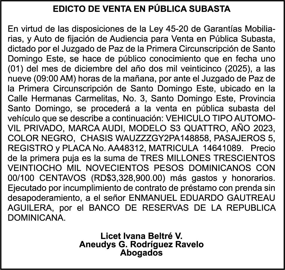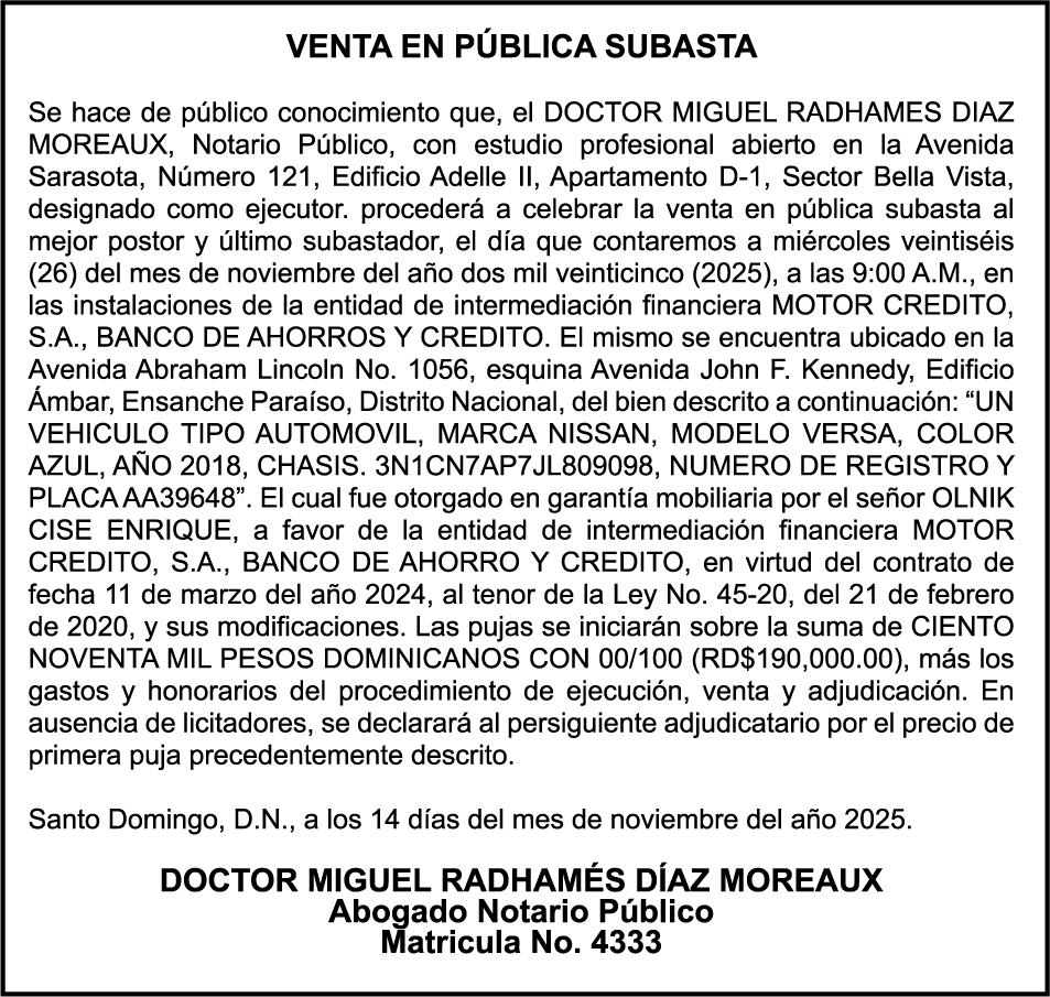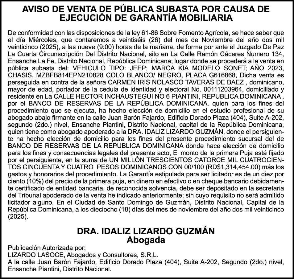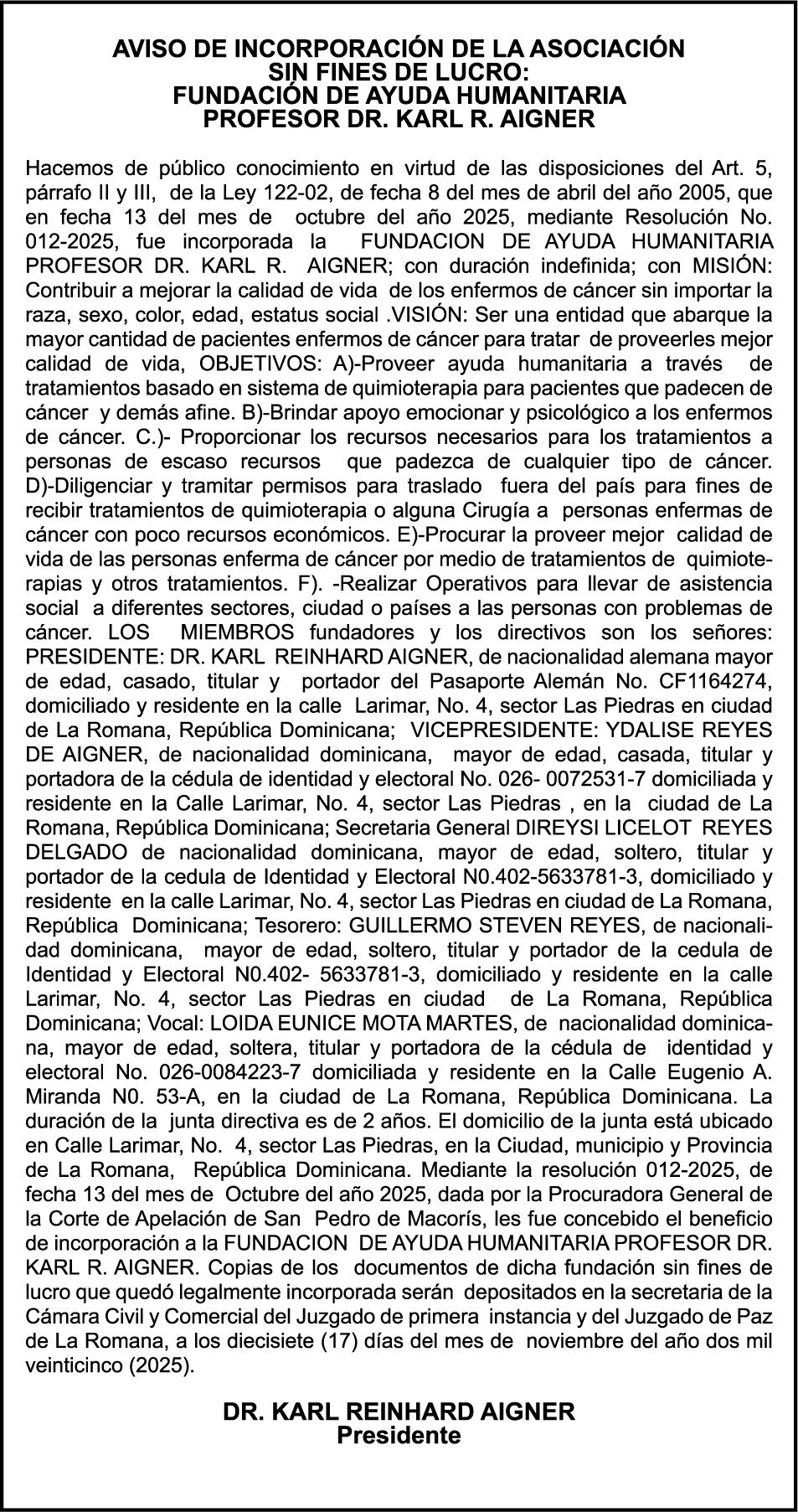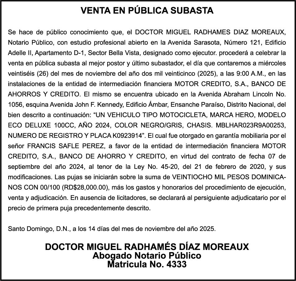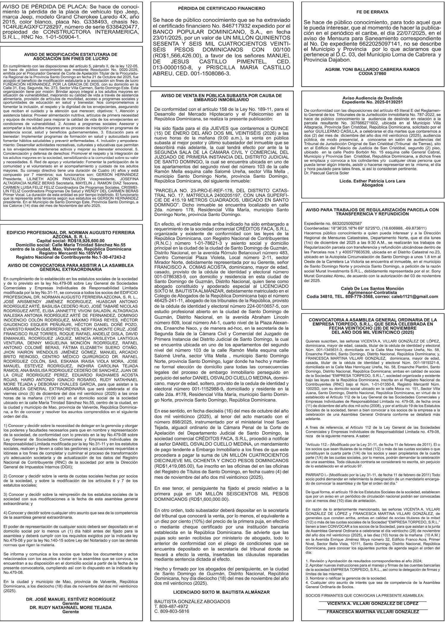 PERDIDA DE MATRICULA AUTOMOVIL PRIVADO HONDA, modelo DOMANI, colorVERDE, Año 2000, placa A468203, Chasis MB41006409, a nombre de GILBERTO ANTINOE HERNANDEZ PERDIDA DE PLACA: NO. K0914379, Chasis LRPRCM204RA000019,Marca SUPERGATO,Modelo XRF 250, Color ROJO,Año 2024, a nombre de FELIX ENRIQUE DIAZ GARCIA,Ced.028-0101268-9