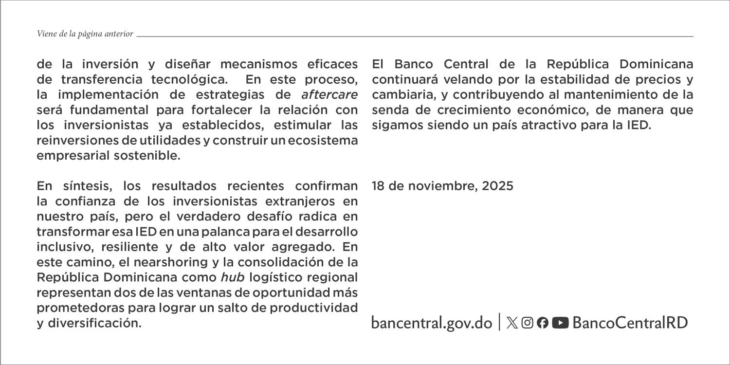 En 2024, RD alcanzó US$4,523 MM en inversión extranjera, un aumento de 3 %. P.20