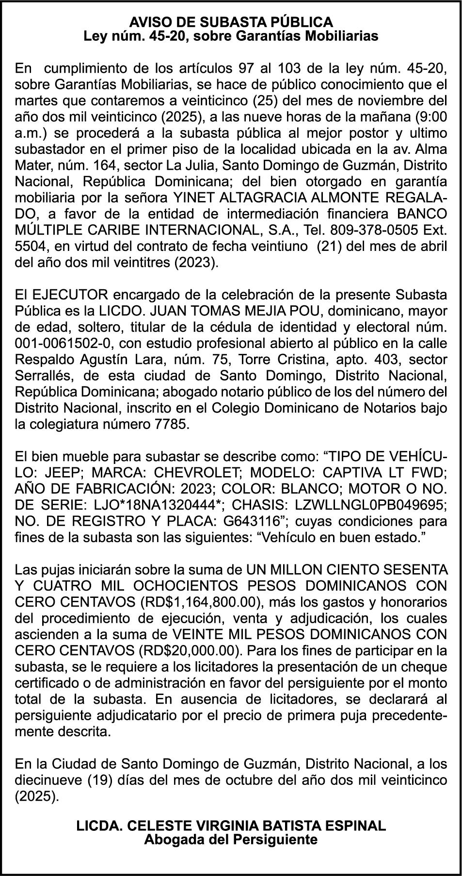 Miércoles 19 De NovieMbre De 2025 www.elcaribe.com.do