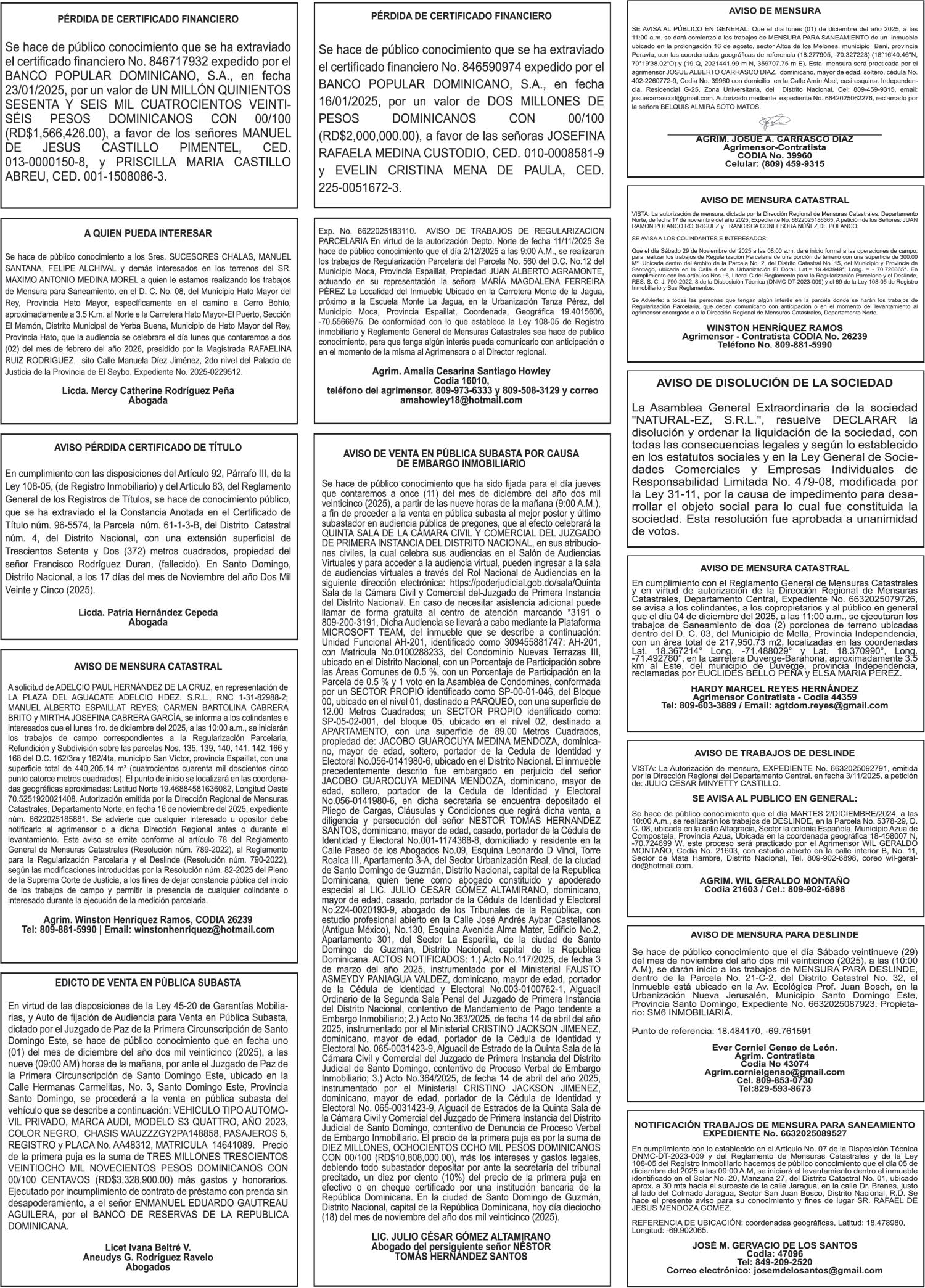 PERDIDA DE PLACA: NO. K0914379, Chasis LRPRCM204RA000019,Marca SUPERGATO,Modelo XRF 250, Color ROJO,Año 2024, a nombre de FELIX ENRIQUE DIAZ GARCIA,Ced.028-0101268-9