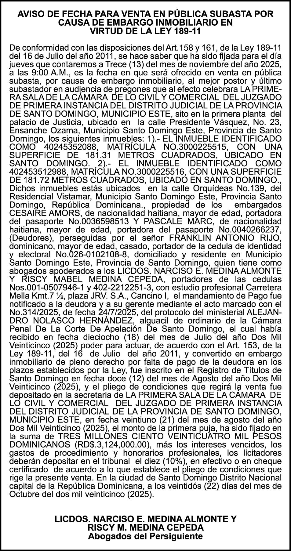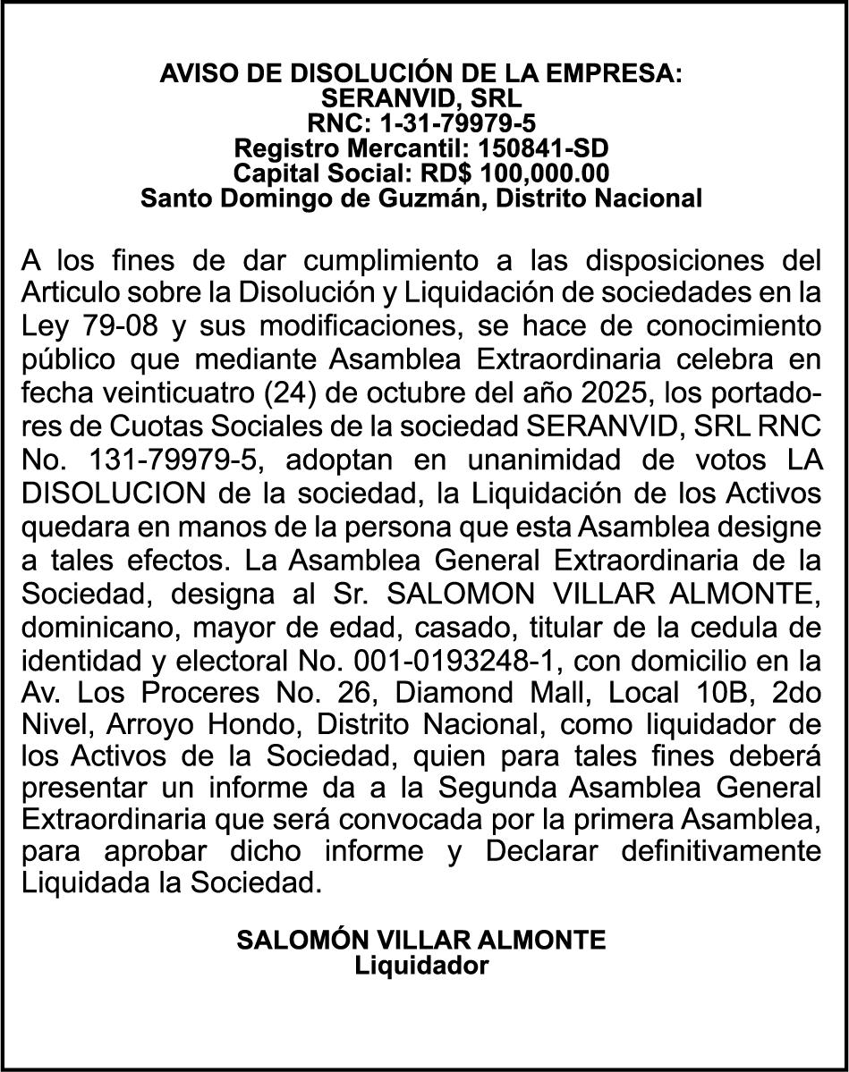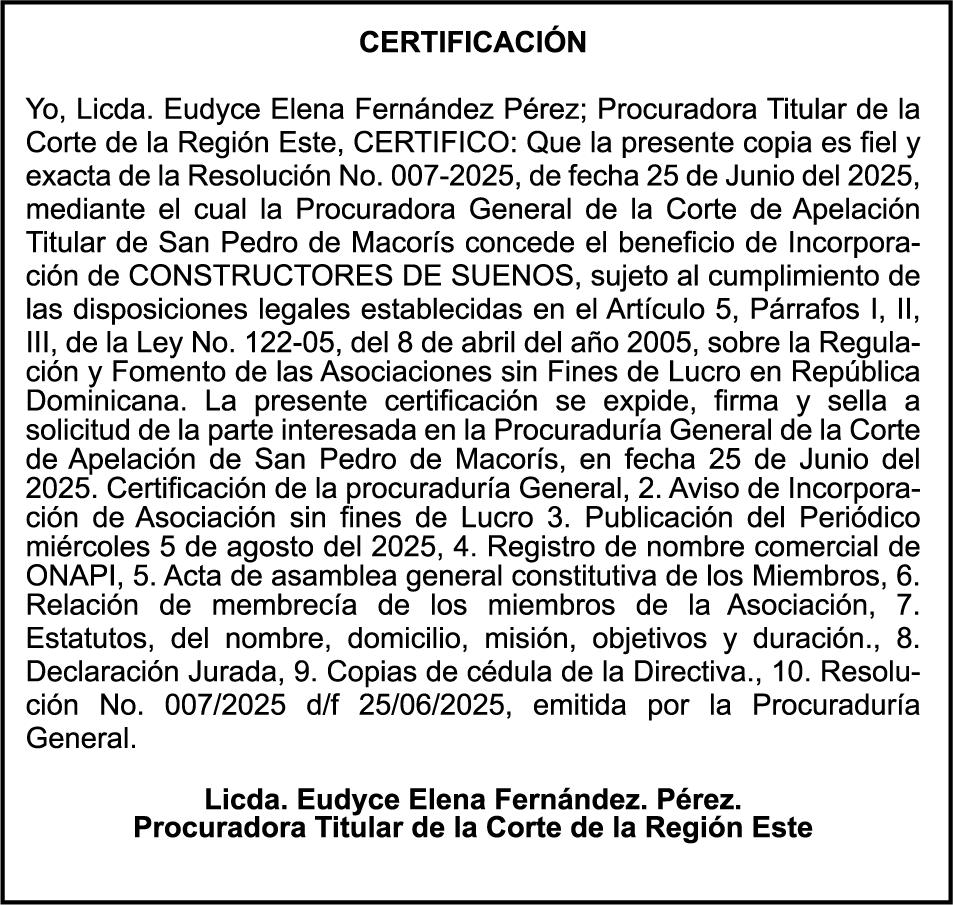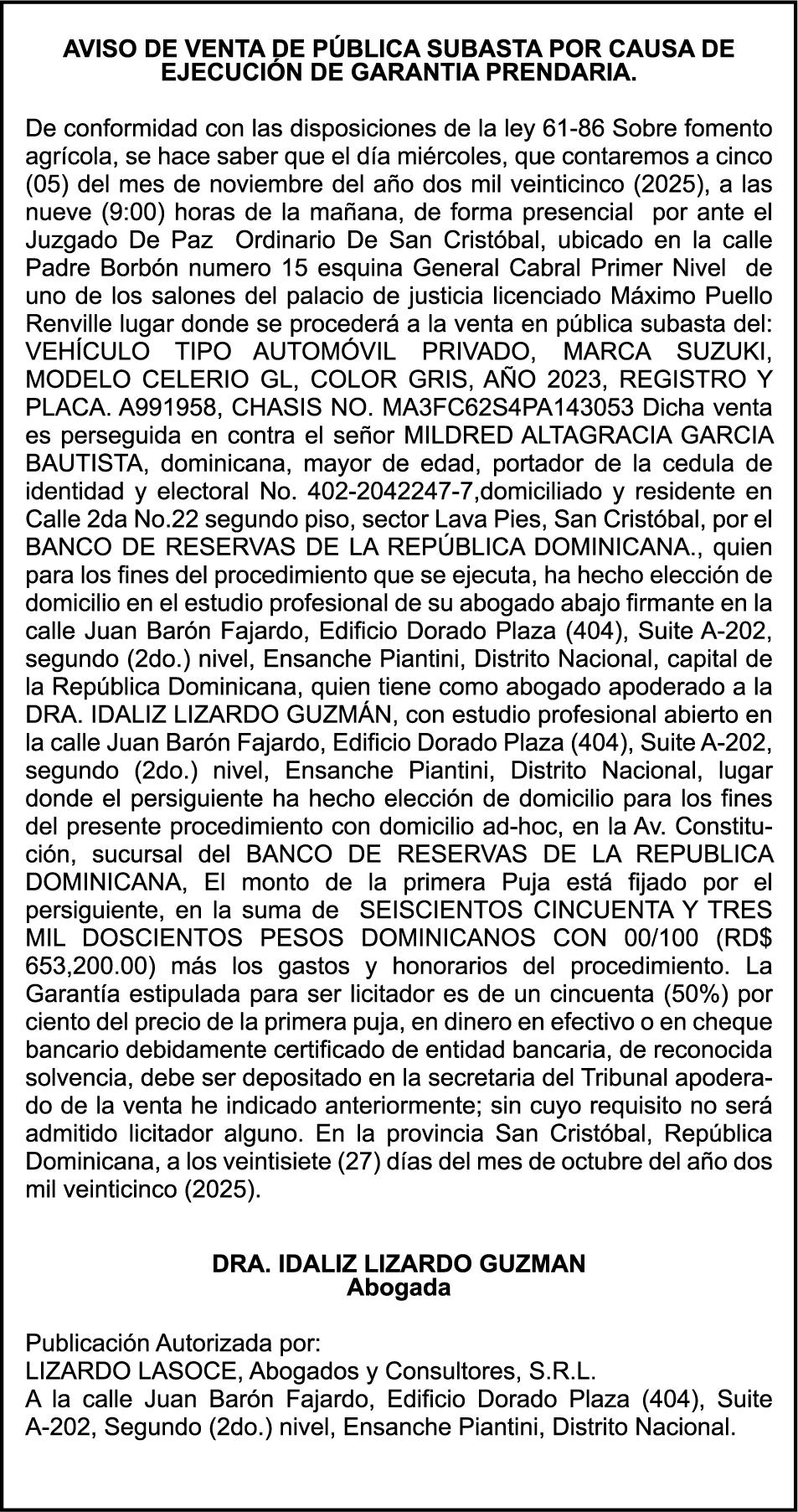 SE hace de público conocimiento la pérdida del Certificado Financiero número 850373416 emitido por Banco Popular Dominicano, S. A. Banco Múltiple, a nombre de ANA LOREN ANGARITA HATTON, portadora de la Cédula de Identidad y Electoral número 001-1805895-7, certificado número 850373416 expedido en fecha 8 de julio de 2025 por el monto de (RD$862,337.30) más intereses generados a la fecha.