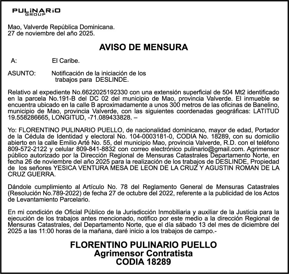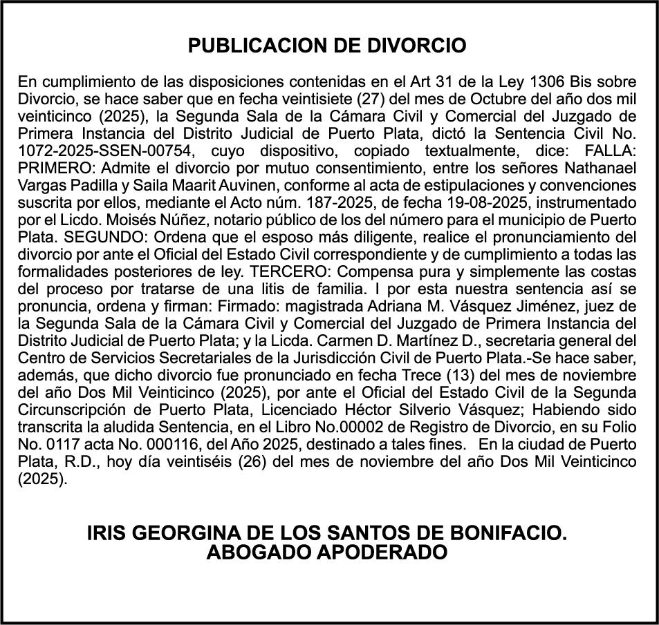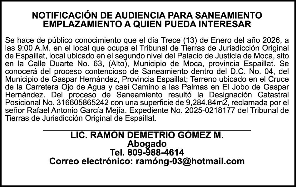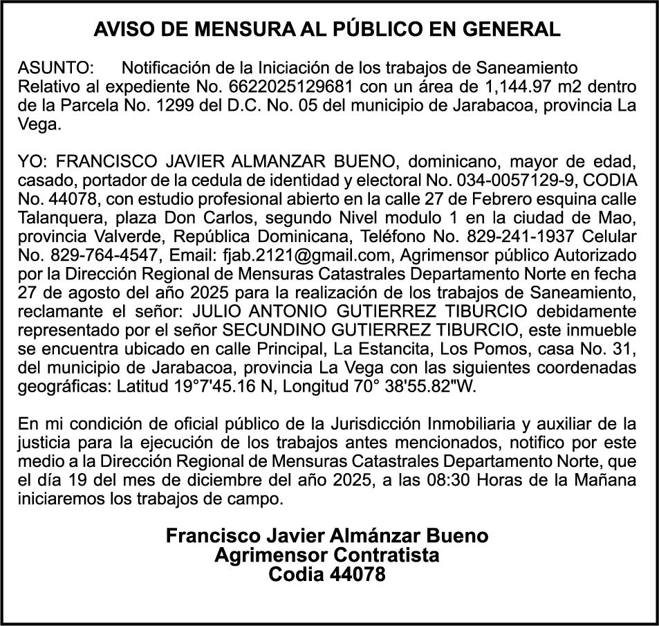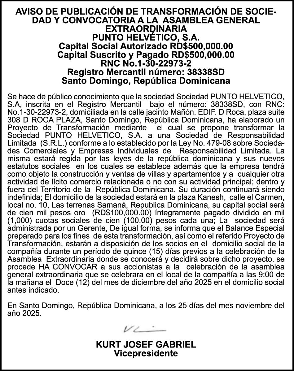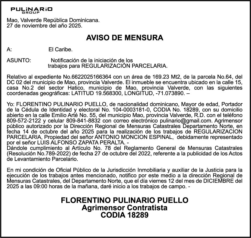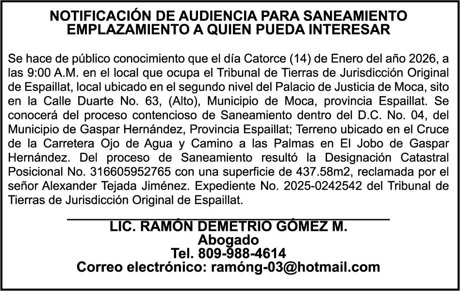 SE hace de público conocimiento la pérdida del Certificado Financiero número 850619255 emitido por Banco Popular Dominicano, S. A. Banco Múltiple, a nombre de JOAO MANUEL RIBEIRO SANJORGE, portador del pasaporte número PAS738908, certificado número 850619255 expedido en fecha en fecha 21 de julio de 2025 por el monto de (USD$6,949.31) más intereses generados a la fecha.