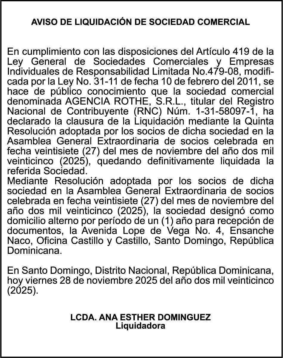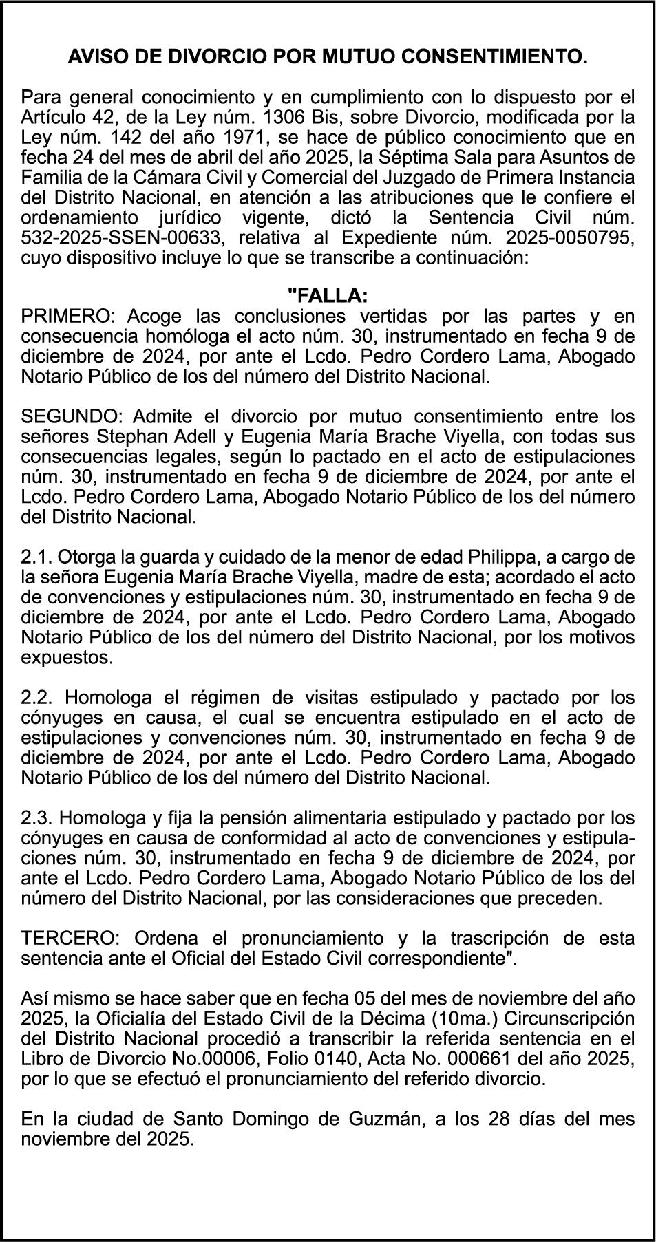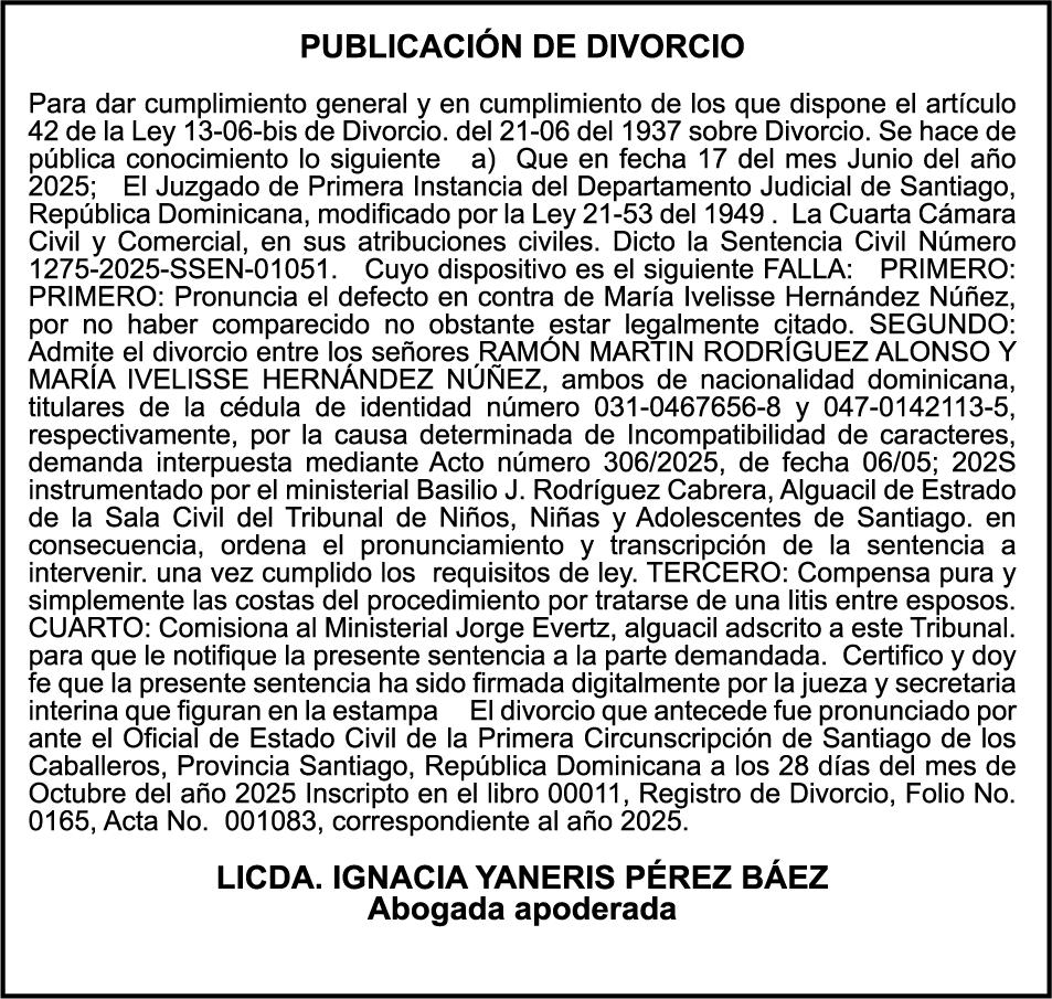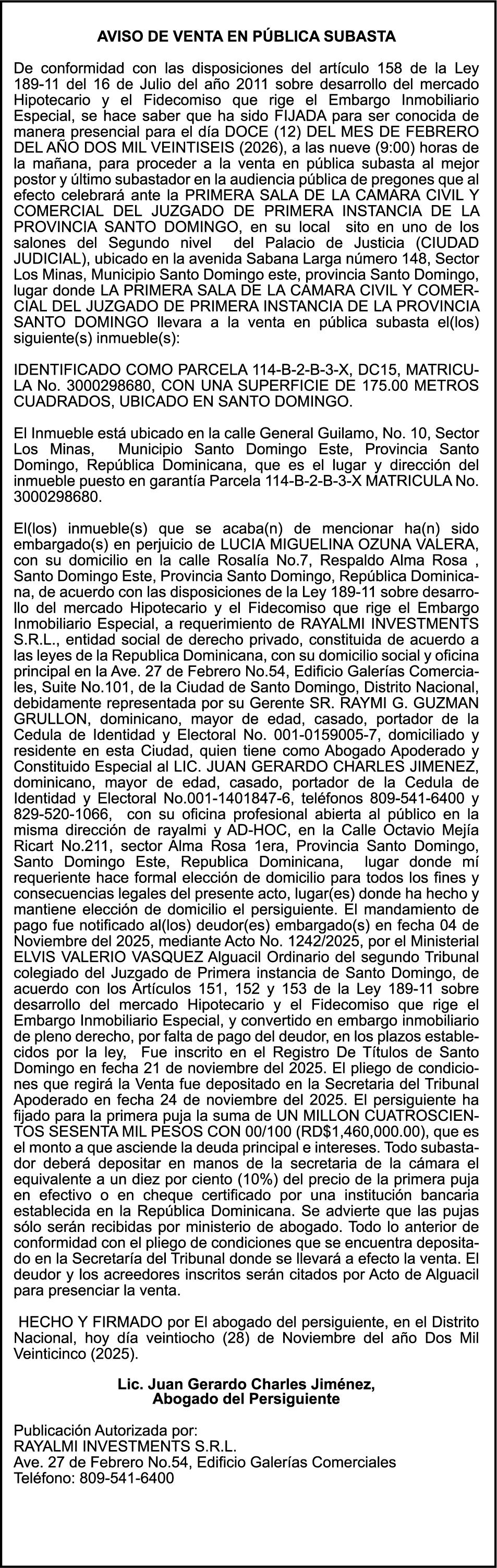 SE hace de público conocimiento la pérdida del Certificado Financiero número 850996554 emitido por Banco Popular Dominicano, S. A. Banco Múltiple, a nombre de ALBERTO CHALAS MARTINEZ, portador de la Cédula de Identidad y Electoral número 001-0595338-4, certificado número 850996554 expedido en fecha en fecha 7 de agosto de 2025 por el monto de (RD$3,000,000.00) más intereses generados a la fecha.