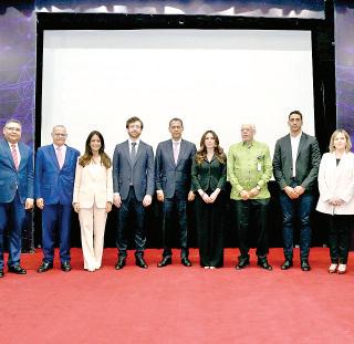 El presidente Luis Abinader y ejecutivos del complejo dan el primer palazo para dejar iniciada la construcción de la obra.