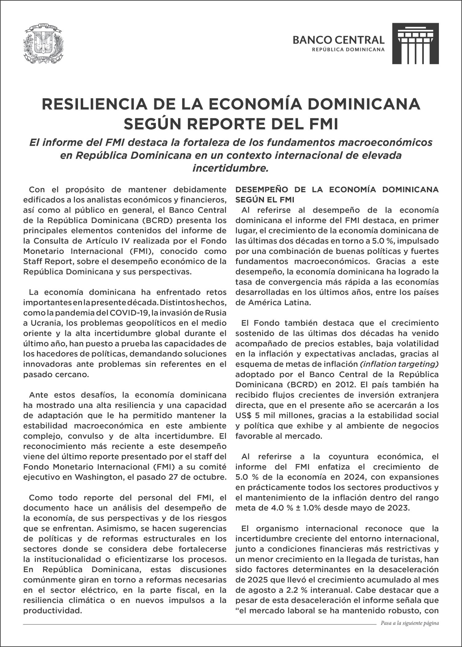 “Ahí no se ha dicho todo y ustedes lo saben. Esa es la declaración como lo hace el Fondo Monetario Internacional cuando viene a la República Dominicana”, explicó el exministro de Educación.