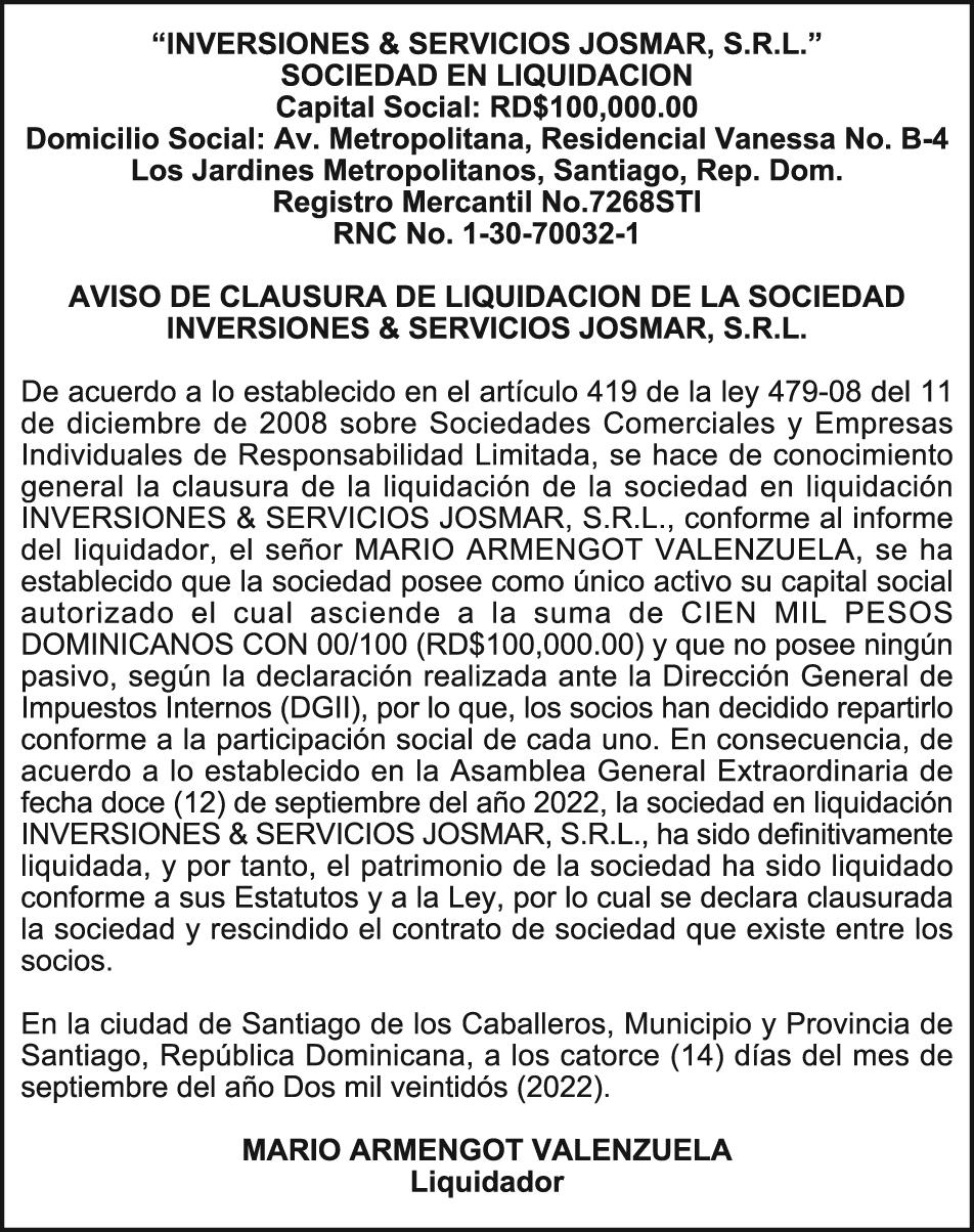 4. elCaribe, Miércoles 14 De septieMbre De 2022LEGALES