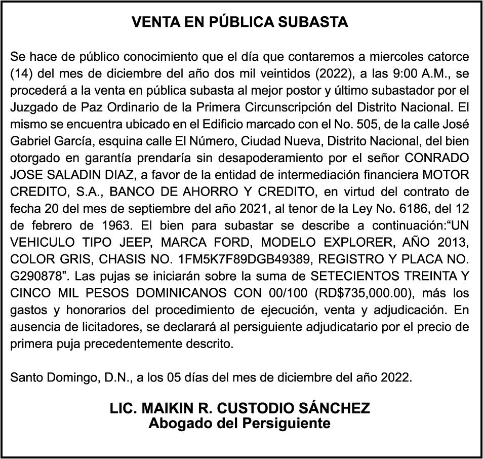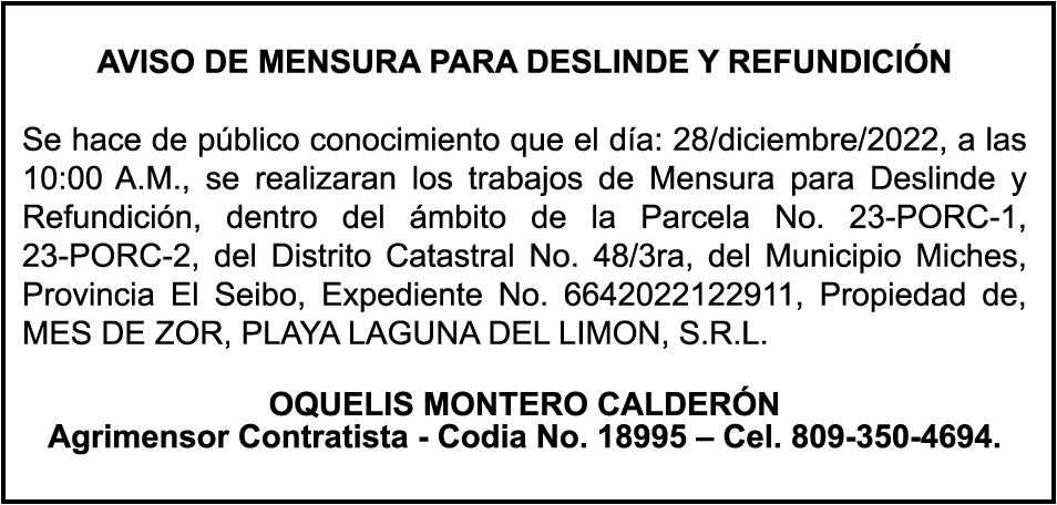 4. elCaribe, Miércoles 7 De DicieMbre De 2022 LEGALES