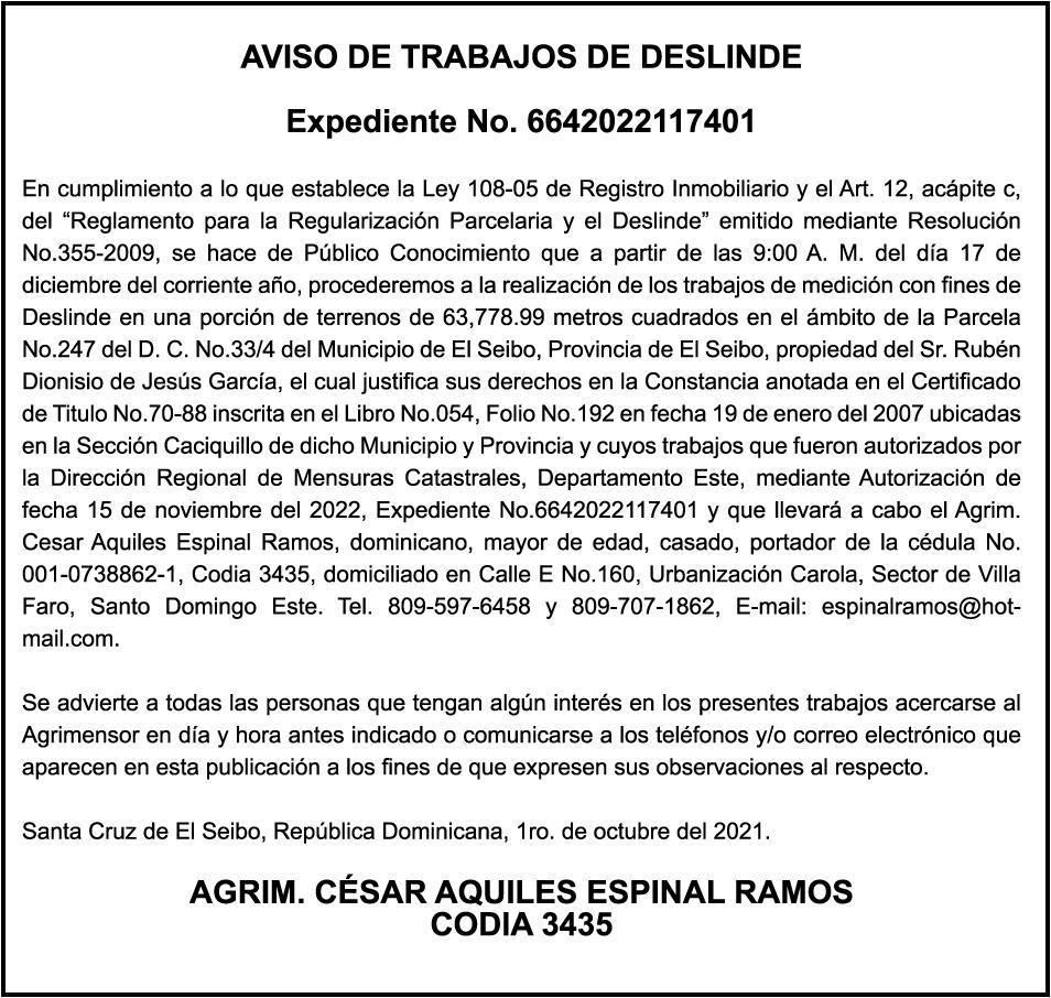 6. elCaribe, Miércoles 7 De DicieMbre De 2022 LEGALES