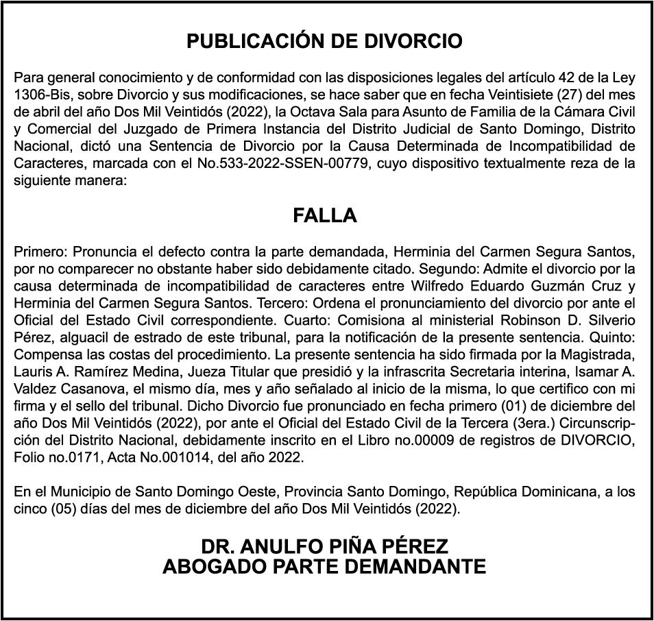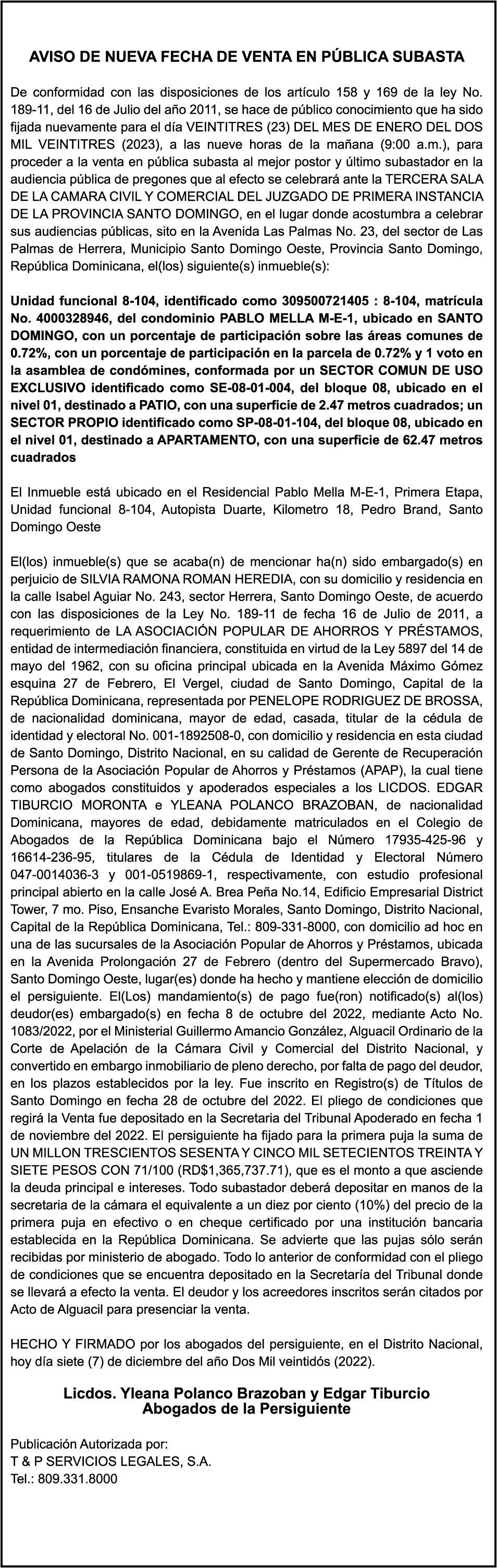 8. elCaribe, Miércoles 7 De DicieMbre De 2022 LEGALES