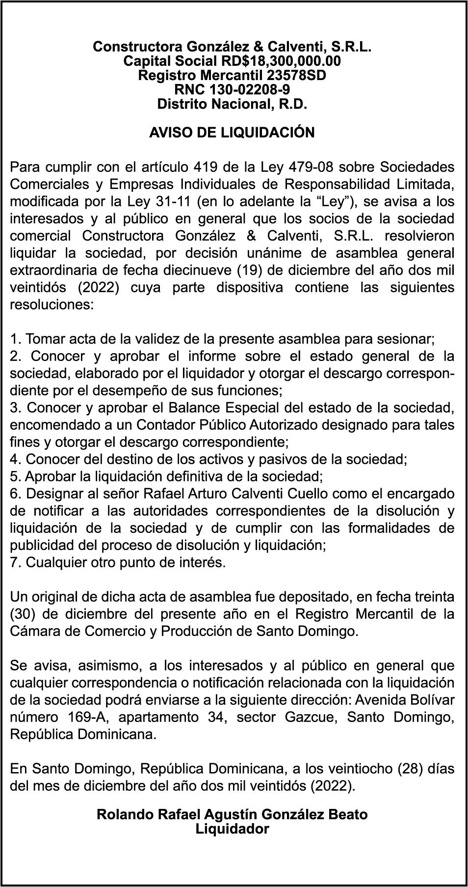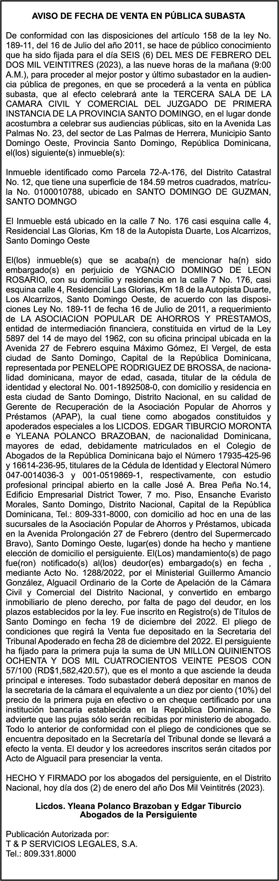 . 7 elCaribe, Lunes 2 De enero De 2023 LEGALES