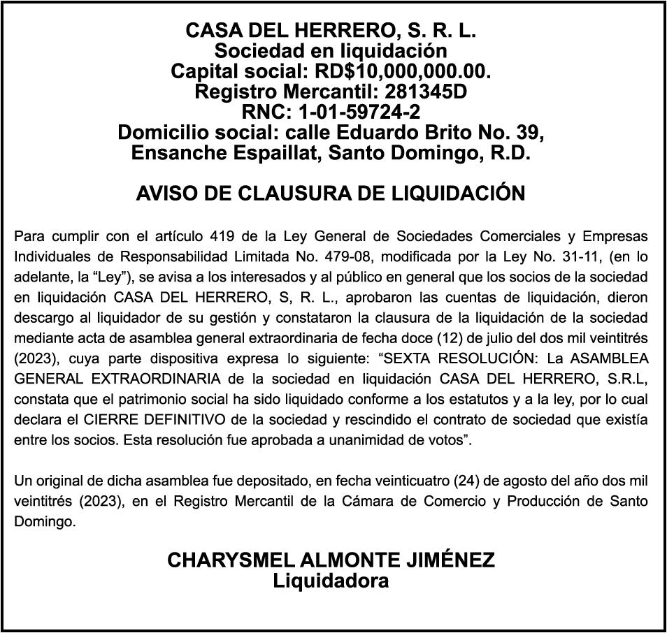 4. elCaribe, Miércoles 30 De Agosto De 2023 LEGALES