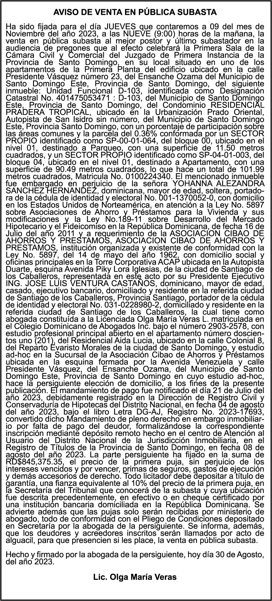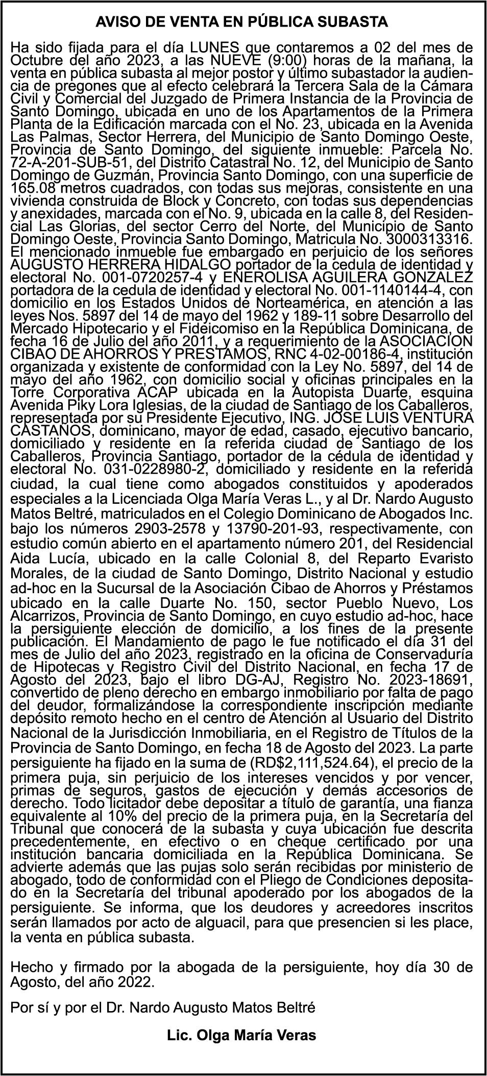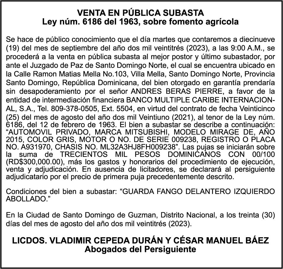 . 7 elCaribe, Miércoles 30 De Agosto De 2023 LEGALES
