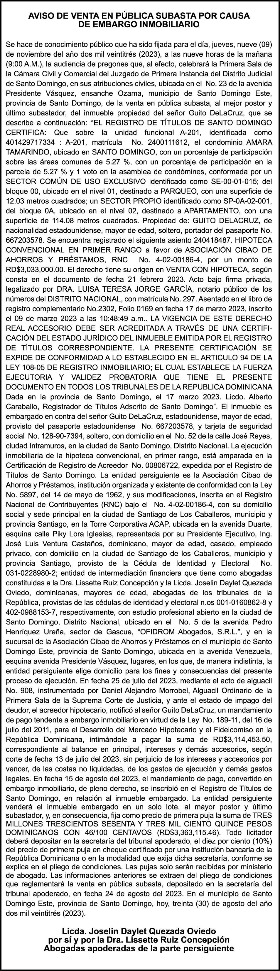 . 5 elCaribe, Miércoles 30 De Agosto De 2023 LEGALES
