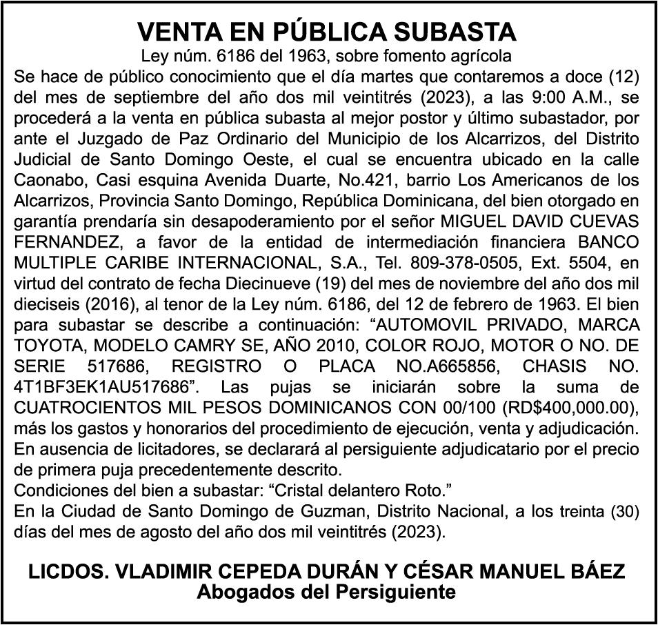 8. elCaribe, Miércoles 30 De Agosto De 2023 LEGALES