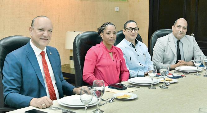 Martín Polanco, Julissa Céspedes, Manuel Estrella, Ulises Rodríguez, Nelson Rodríguez, Alba Nely Familia y Katherine Hernández, en el encuentro que sirvió de plataforma para que el director de Proindustria expusiera sobre los trabajos y logros de la institución estatal.