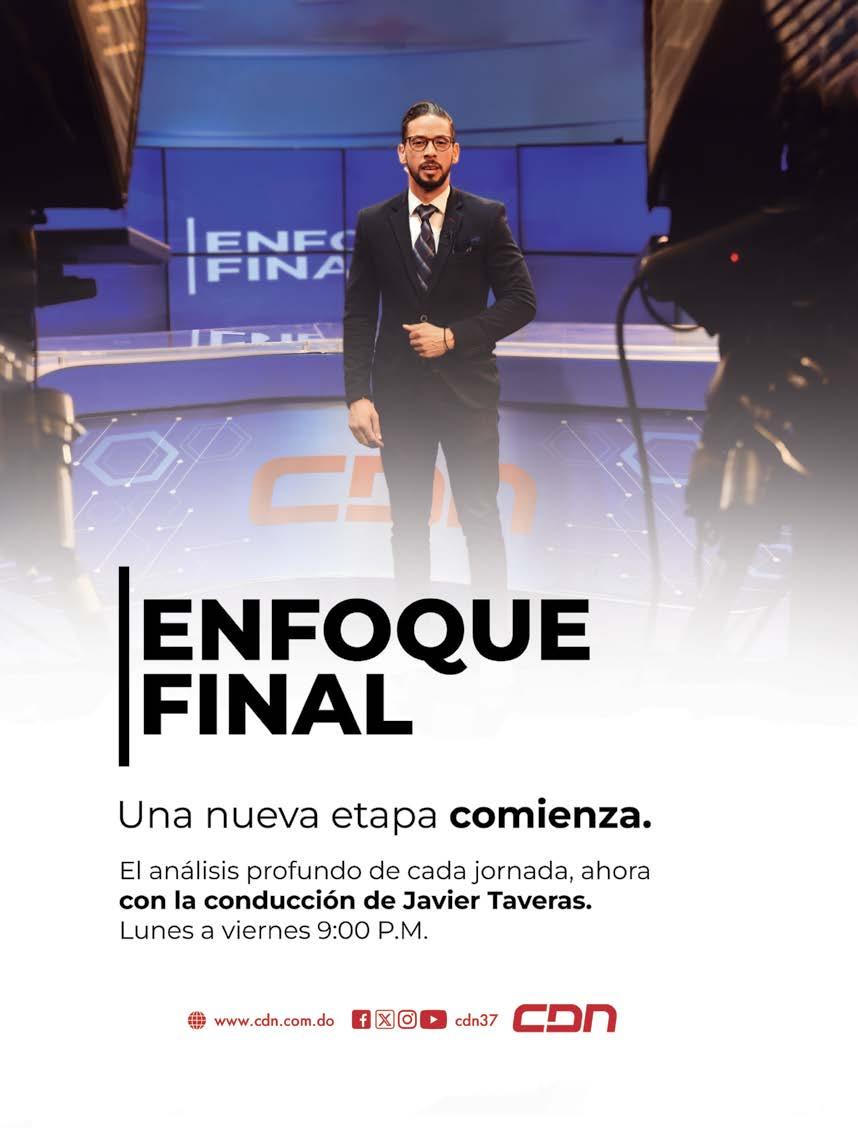 Con más de dos décadas de trayectoria, una voz inconfundible y una credibilidad ganada a pulso, Javier Taveras asume un nuevo reto profesional al frente del reconocido programa informativo Enfoque Final, transmitido por CDN. Su llegada marca una nueva etapa para este espacio que, bajo su conducción, promete mantener el rigor periodístico y la conexión directa con la audiencia que caracteriza a la cadena.