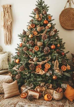 Perfecto para quienes buscan una Navidad cálida y sostenible. Ramas, piñas, fibras naturales y tonos verde oliva, beige y marrón crean un entorno rústico, acogedor y armonioso con la naturaleza.