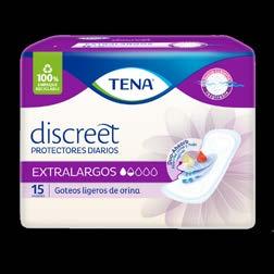 Usa lo mejor, usa TENA Discreet Los nuevos protectores TENA Discreet Extralargos han sido diseñados pensando precisamente en todas las mujeres como tú, que buscan una solución discreta y efectiva para los goteos ligeros de orina. No son solo protectores; son una invitación a recuperar la confianza y a no quedar en evidencia, de cuenta de los malos olores o la irritación de la piel.