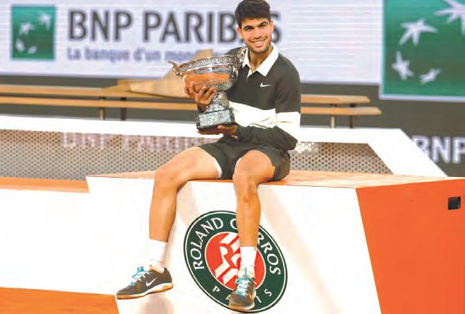 Carlos Alcaraz, ganó su segundo título consecutivo del Abierto de Francia en un emocionante partido de cinco sets contra el número uno del mundo, Sinner. El español remontó una desventaja de dos sets en París para lograr su quinta victoria consecutiva contra su rival italiano.