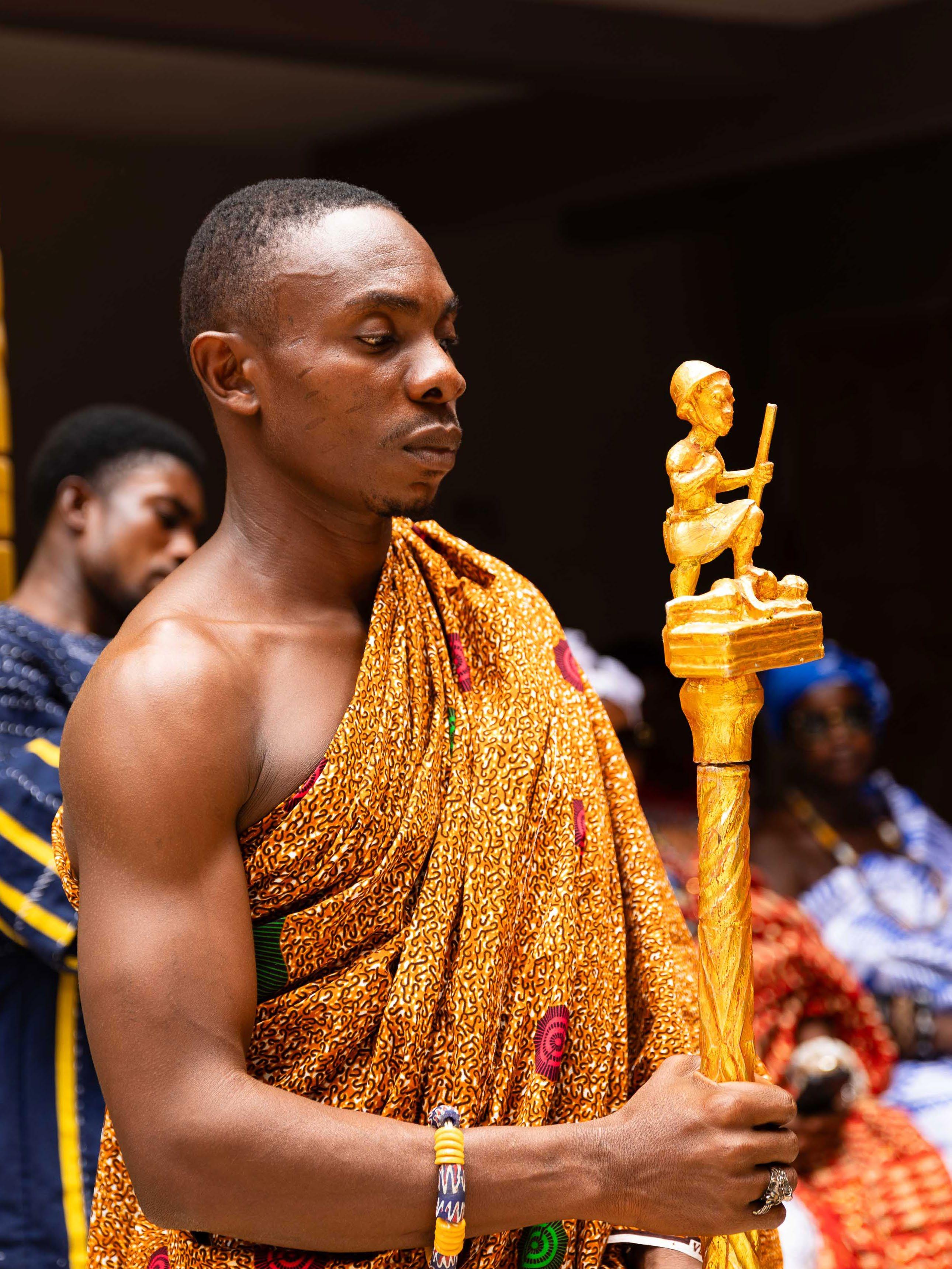 The ceremony begins with the chief and his counsel, draped in bright Ghanaian clothing, entering the hall to the thunderous sound of African drums and celebration.