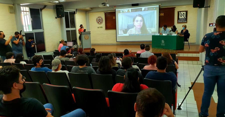 Las palabras de bienvenida estuvieron a cargo de la doctora Sánchez Peña, quien señaló que las actividades de la Semana Cultural FALCOM 2022 se realizan en el marco del 42 aniversario de la Facultad. Invitó a todas y todos los estudiantes a sumarse y participar en todas las actividades, que incluye una oferta de interés para las cuatro licenciaturas del plantel (Comunicación, Periodismo, Letras Hispanoamericanas y Lingüística), así como para su posgrado.